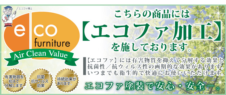 抗菌性、抗ウィルス性の効果がある、エコファ加工を施しているので、いつでも衛生的で快適にお使いいただけます。