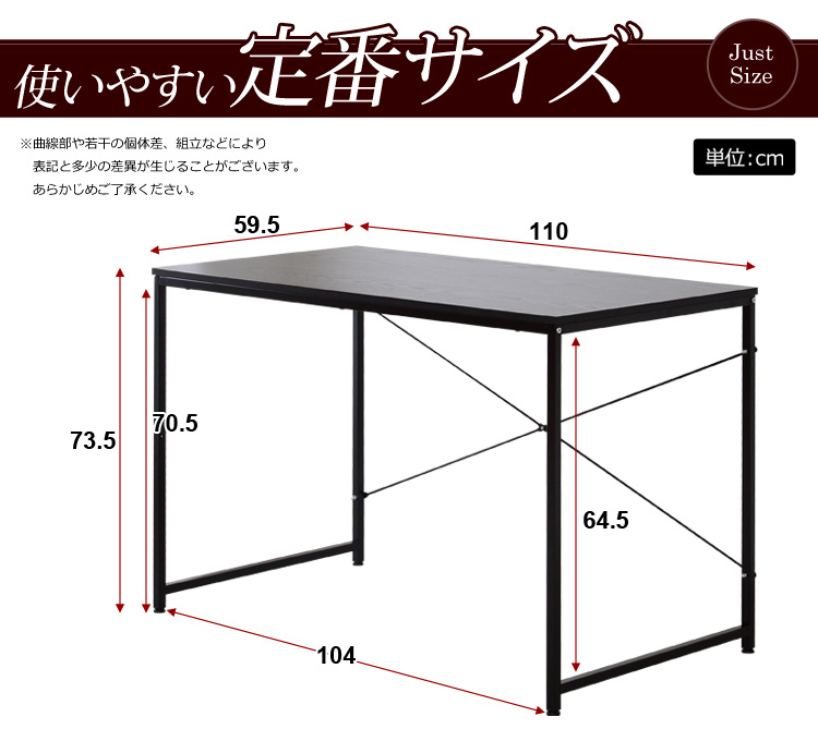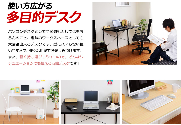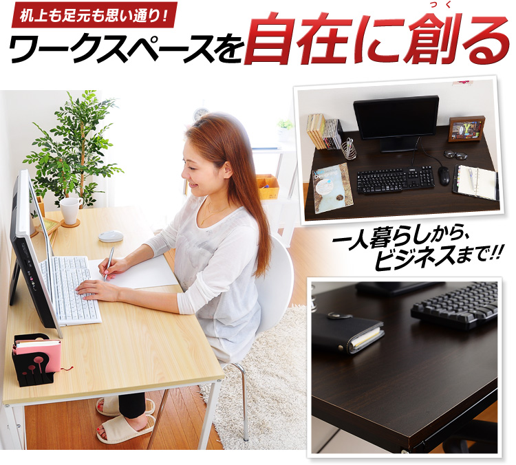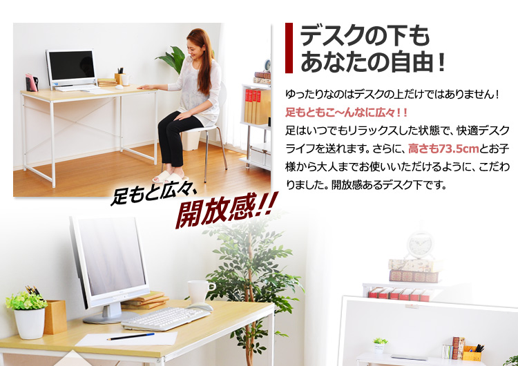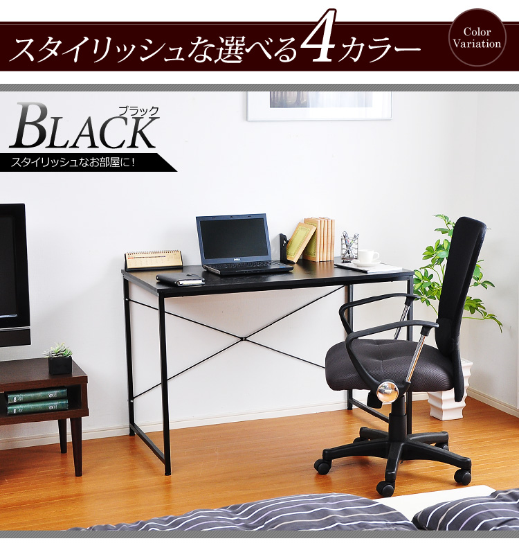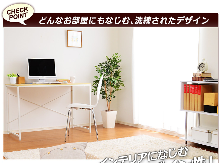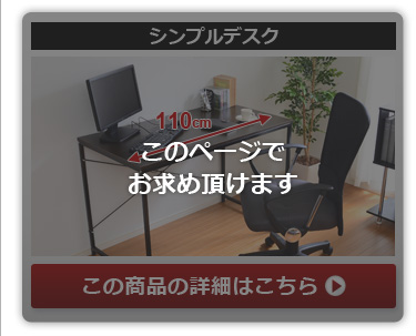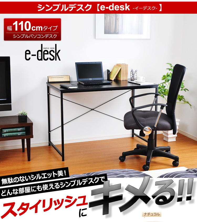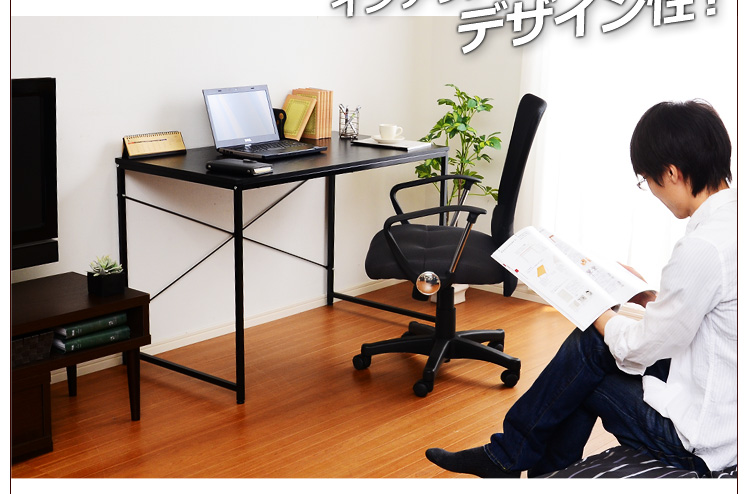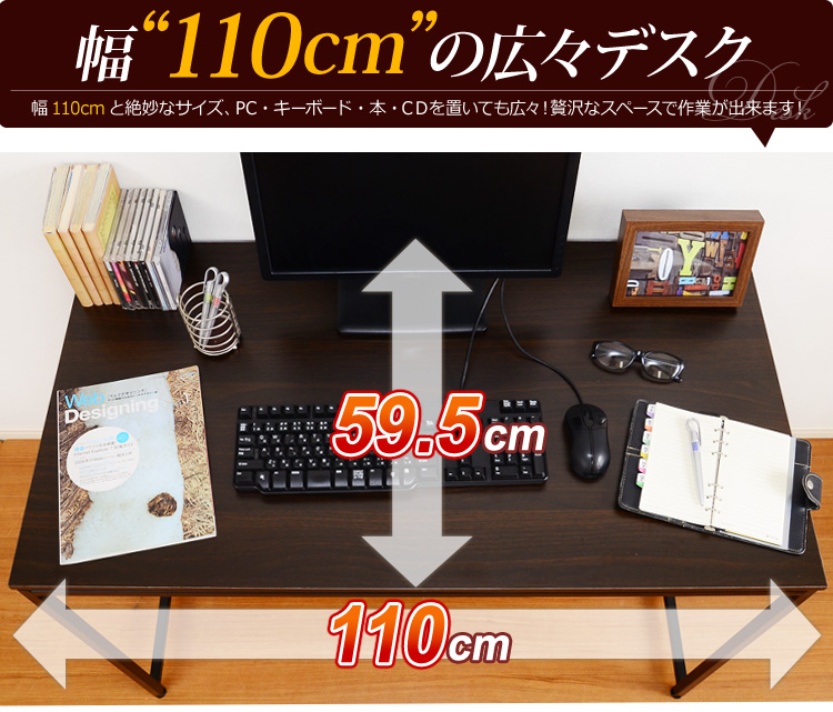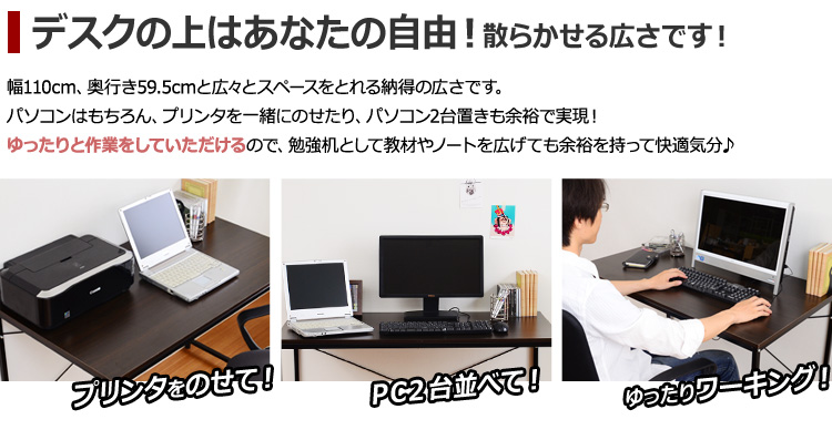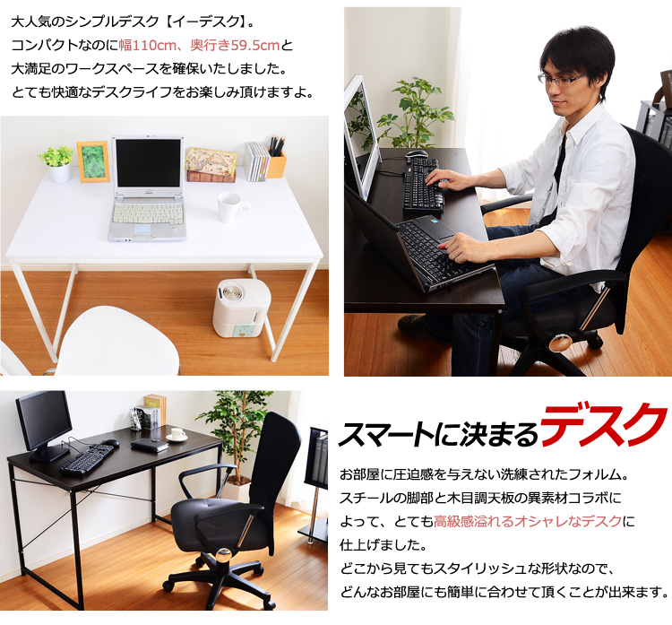 どんなお部屋にも合うシンプルなフォルム。幅110cmのデスク幅で作業スペースも充実!