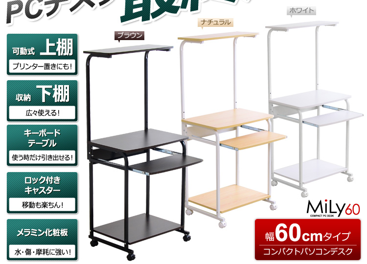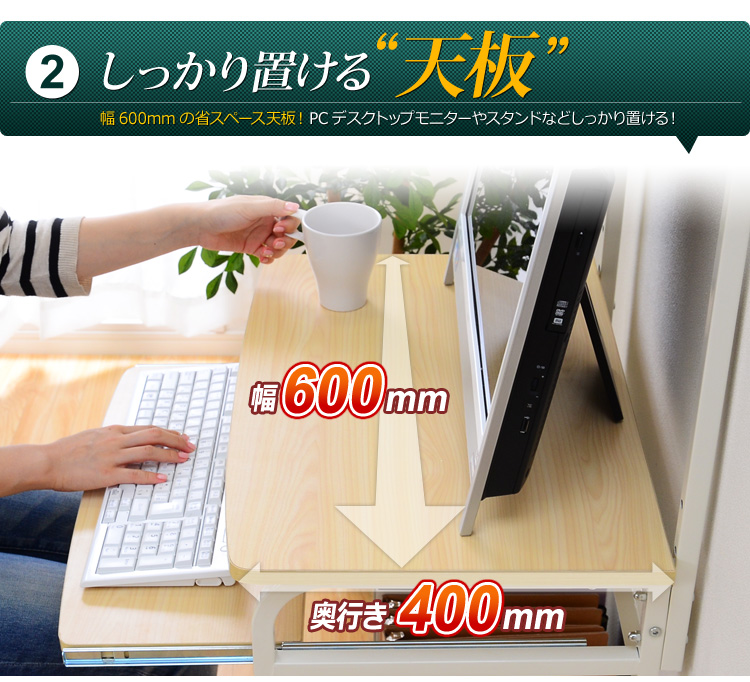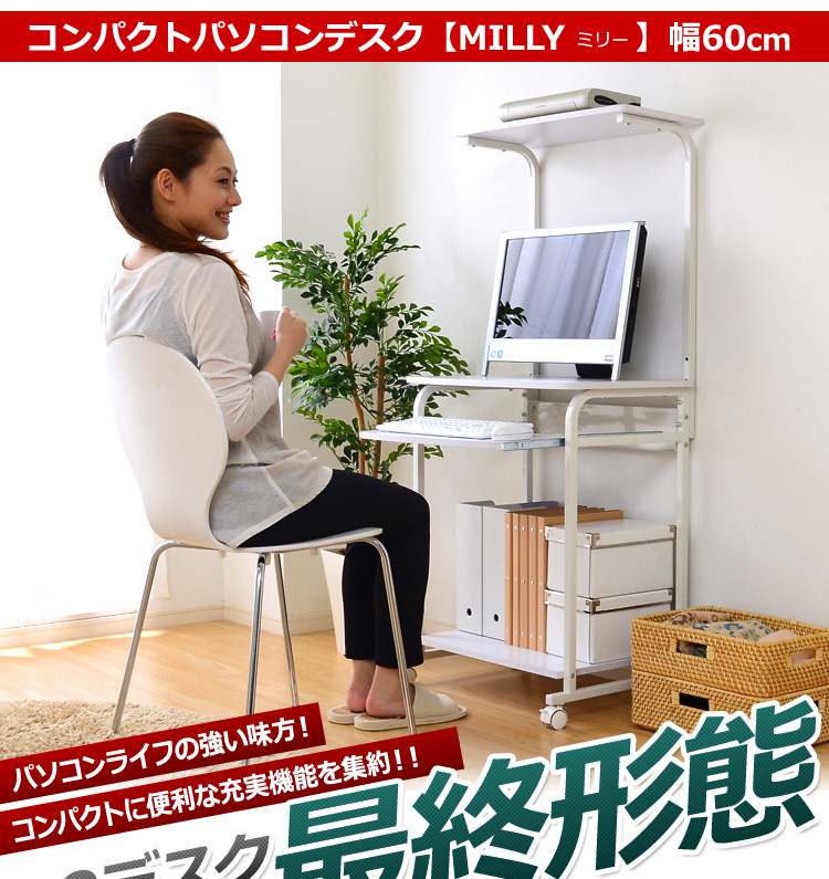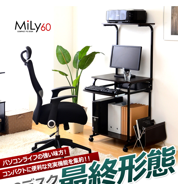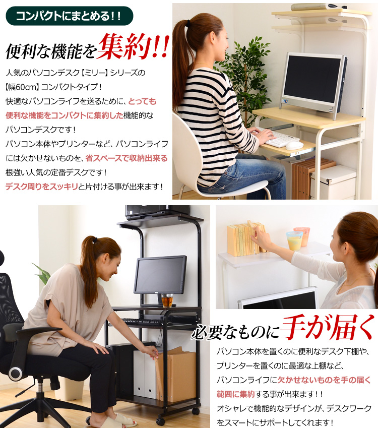 デスク幅60cmのコンパクトなデスクに省スペースで収納できる便利な機能を集約!人気の定番デスクです!
