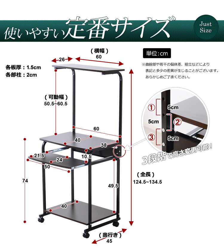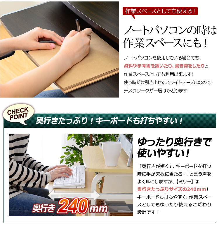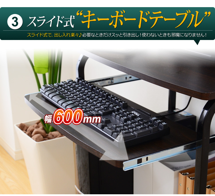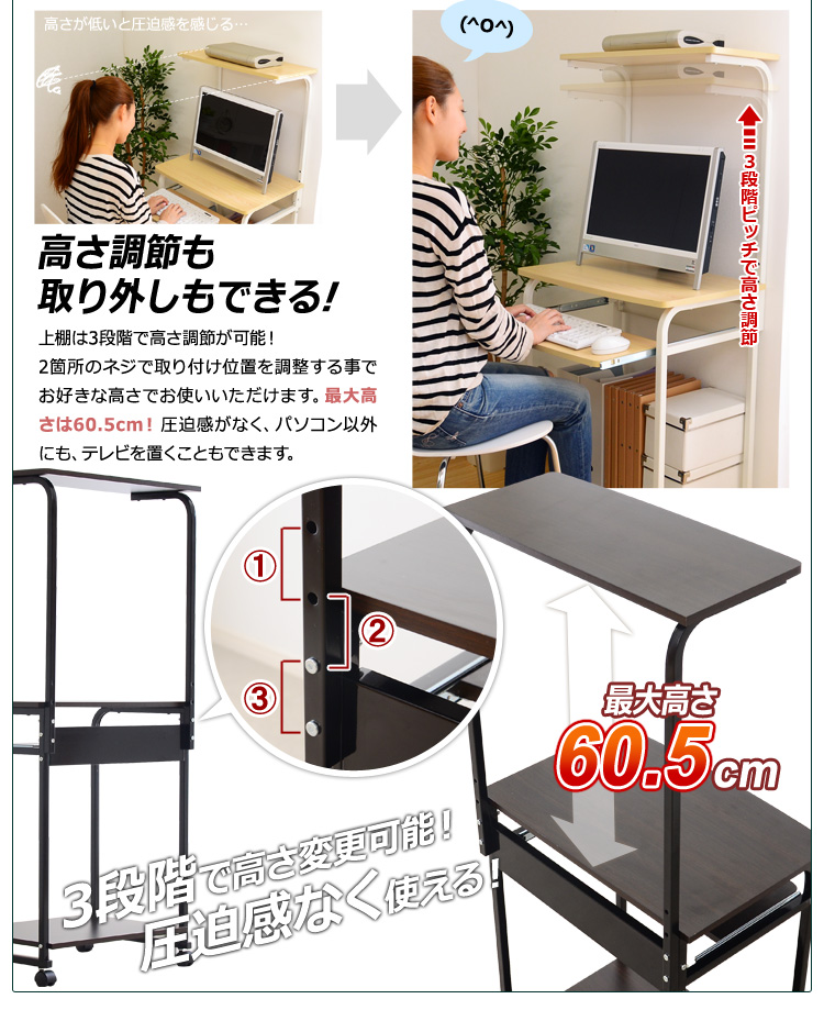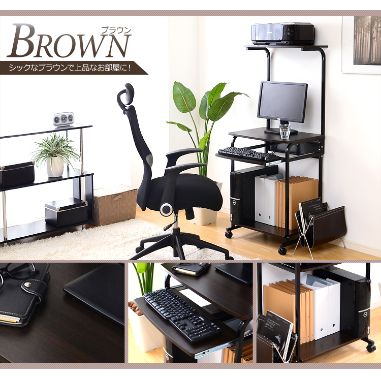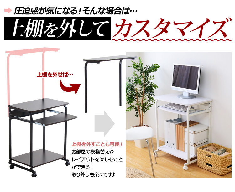 プリンターを置ける上棚、パソコン本体を置くのに最適な下棚、便利な多機能がデスクワークをサポートしてくれます!