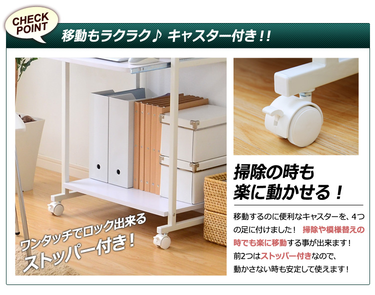 自由に動かせるから掃除や模様替えなどの移動に便利!ロック機能も付いているのでしっかり固定もできます!