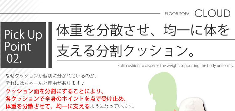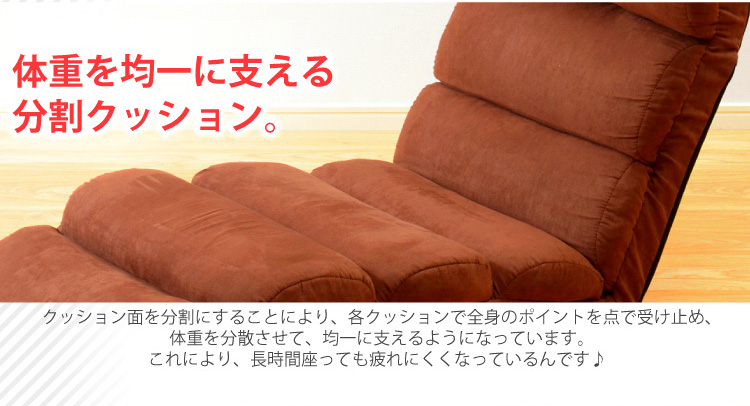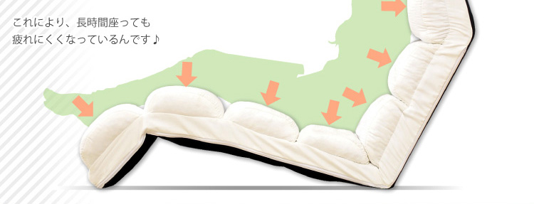 低反発ウレタンがたっぷりと内包されてる分割クッションで、体重を分散させて身体を均一に支えてくれる設計になっております。