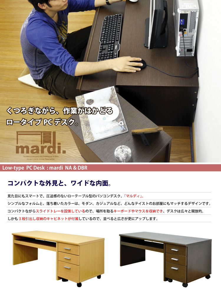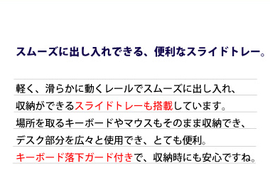 奥行きが浅めなコンパクトな設計のデスクです。シンプルなフォルムと、落ち着いたカラーでどのお部屋にもマッチします。