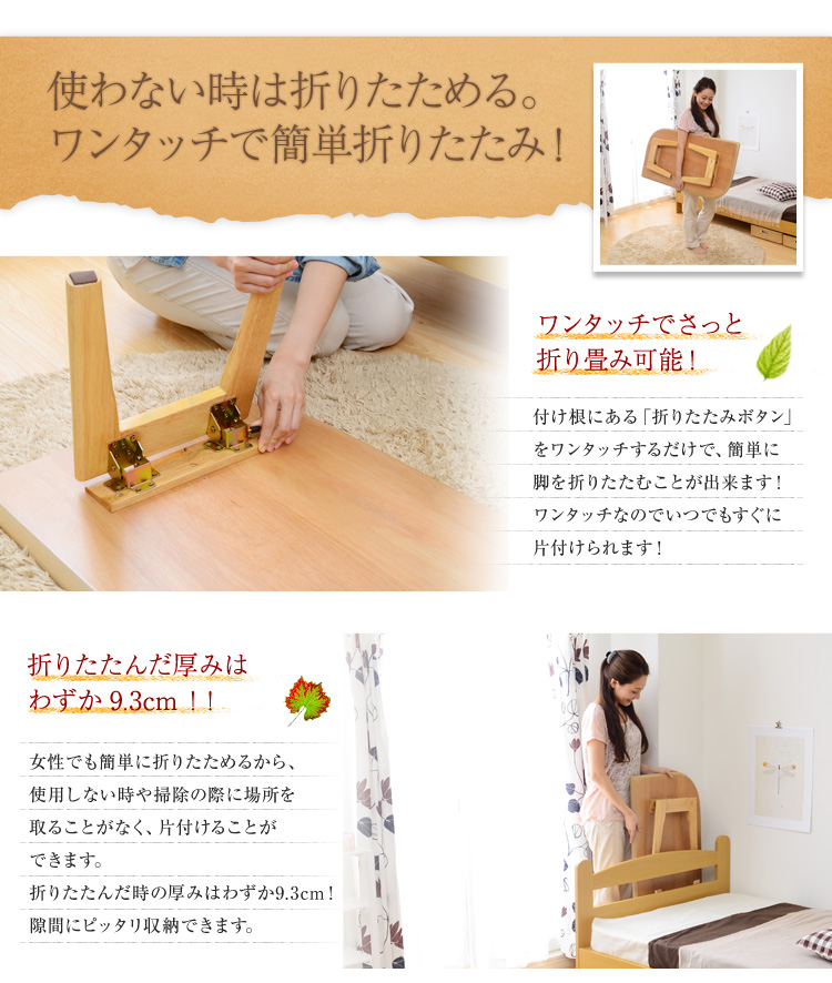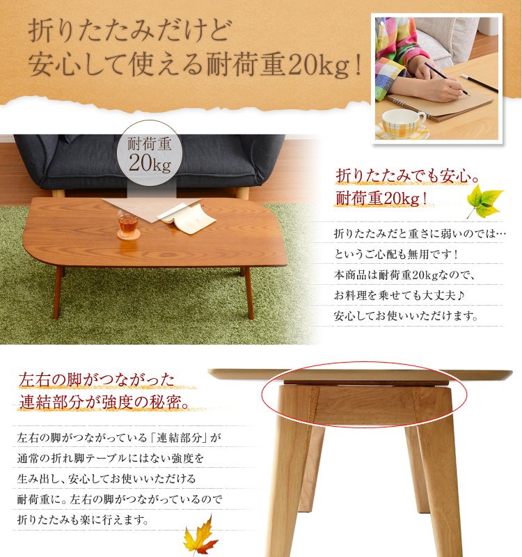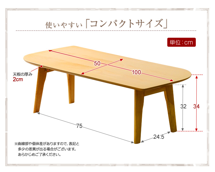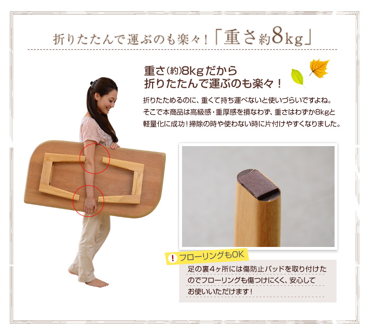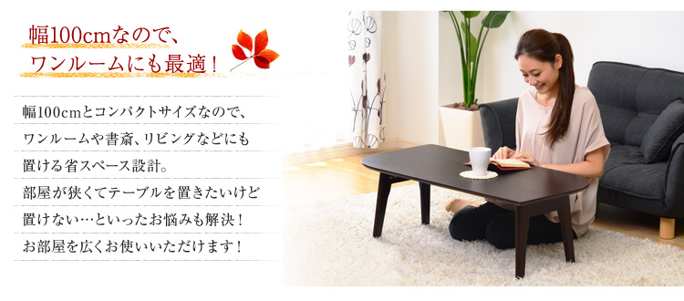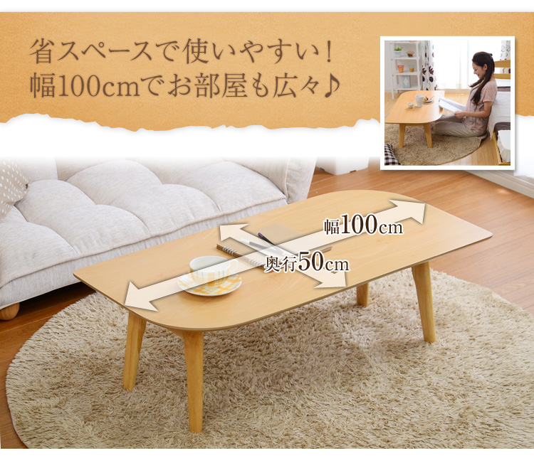 幅100cmなので省スペースにも置けるテーブルです。使わないときにワンタッチで簡単に折りたためて、重さも7.5kgと持ち運びも楽々!