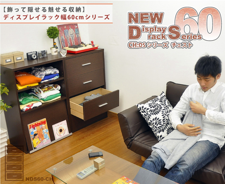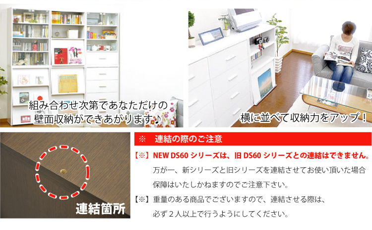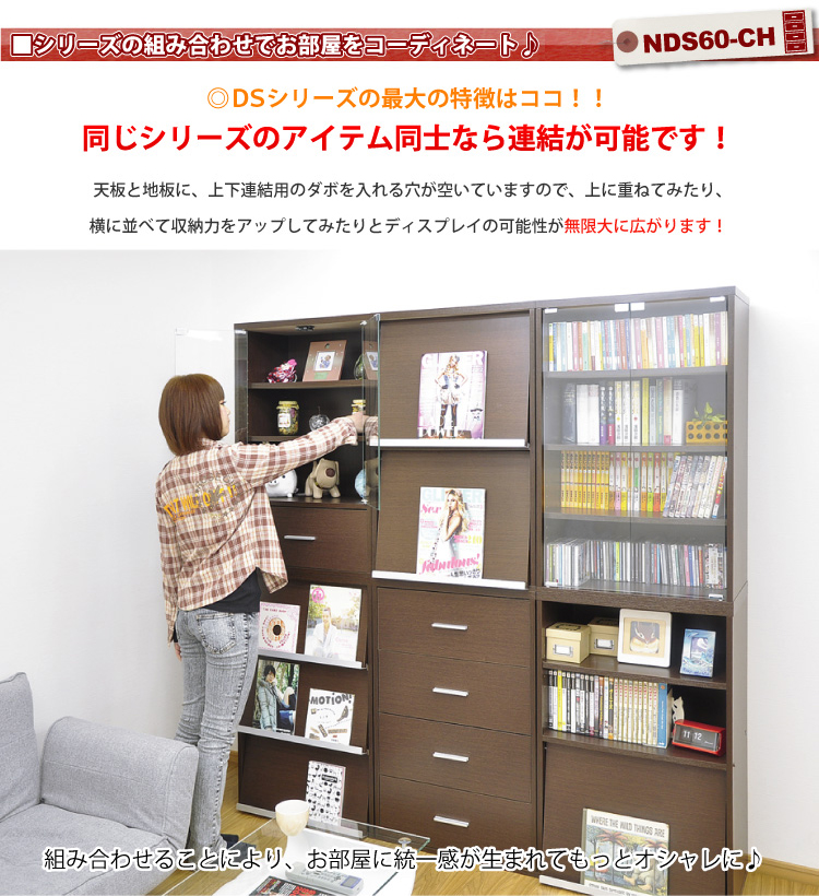 他の[ディスプレイ幅60cmシリーズ]を重ねたり、並べて収納力をアップしたり、組み合わせることでお部屋に統一感がでてもっとオシャレになります!