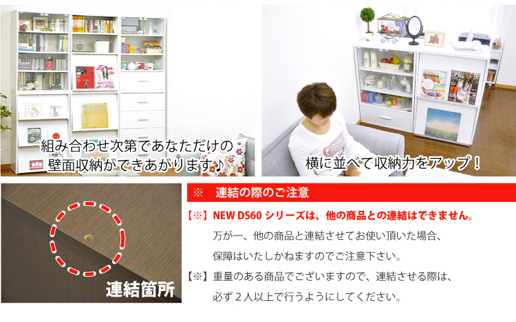 他の[ディスプレイ幅60cmシリーズ]を重ねたり、並べて収納力をアップしたり、組み合わせることでお部屋に統一感がでてもっとオシャレになります!