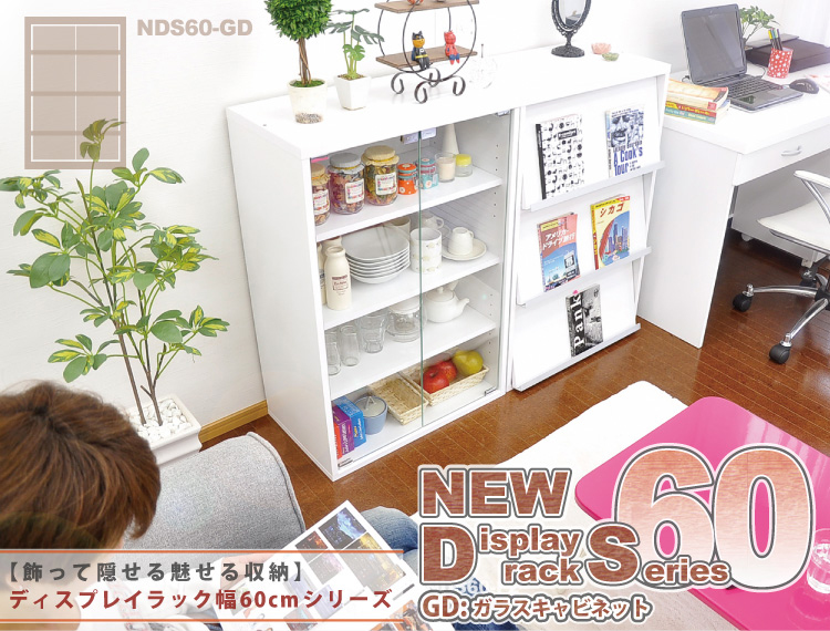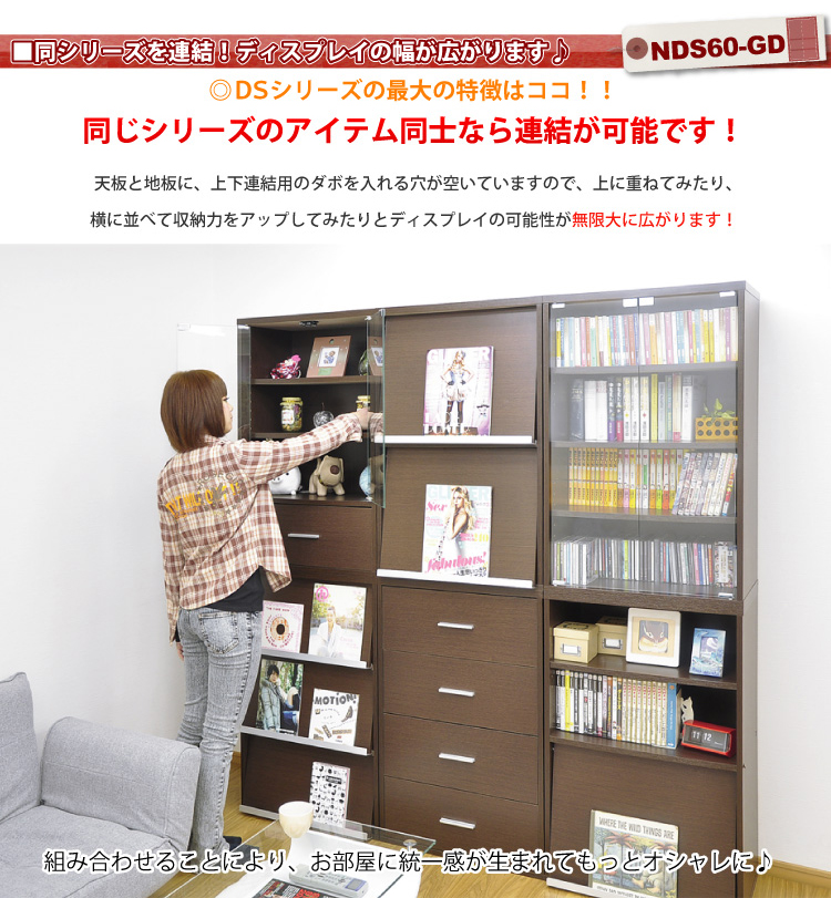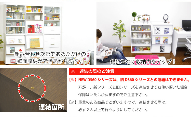 他の[ディスプレイ幅60cmシリーズ]を重ねたり、並べて収納力をアップしたり、組み合わせることでお部屋に統一感がでてもっとオシャレになります!