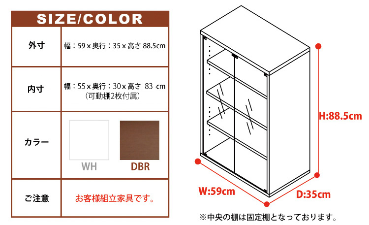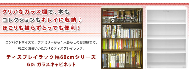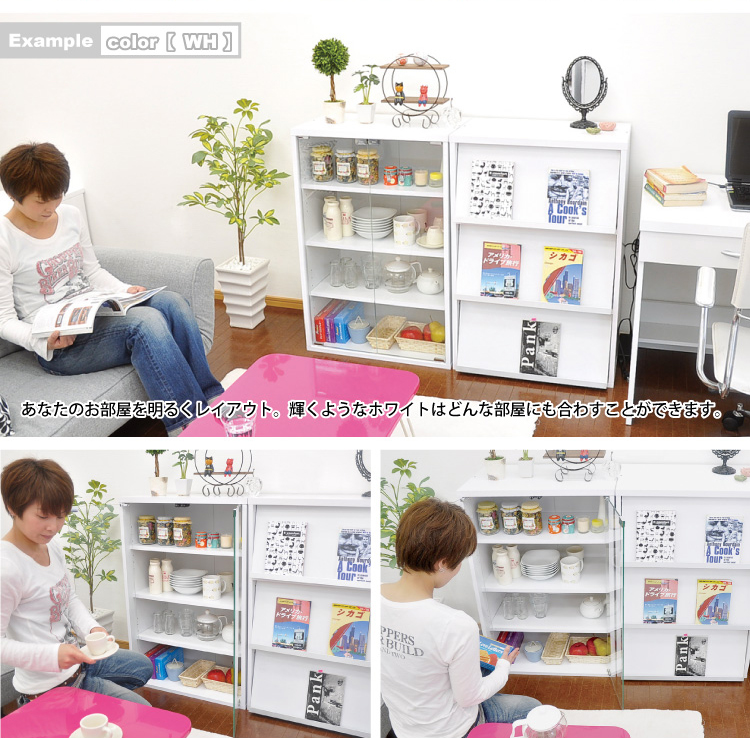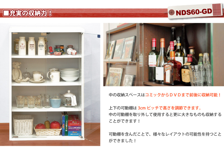 ガラス戸はホコリから守ってくれるので、食器や大事なコレクション等を収納するのに最適!可動棚で収納物に合わせて調節できます!