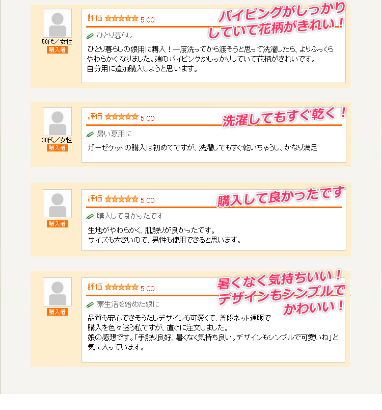 | 【5重ガーゼケット】仕様詳細 | ||||||||