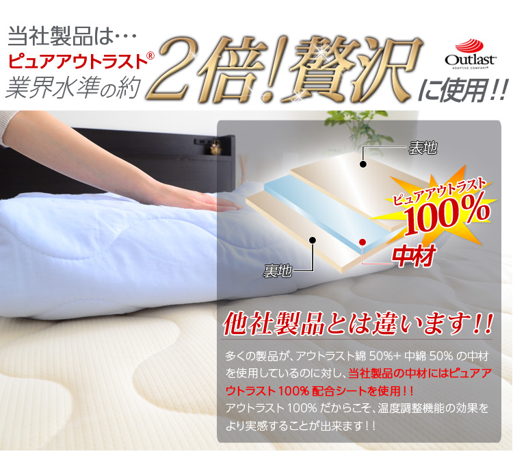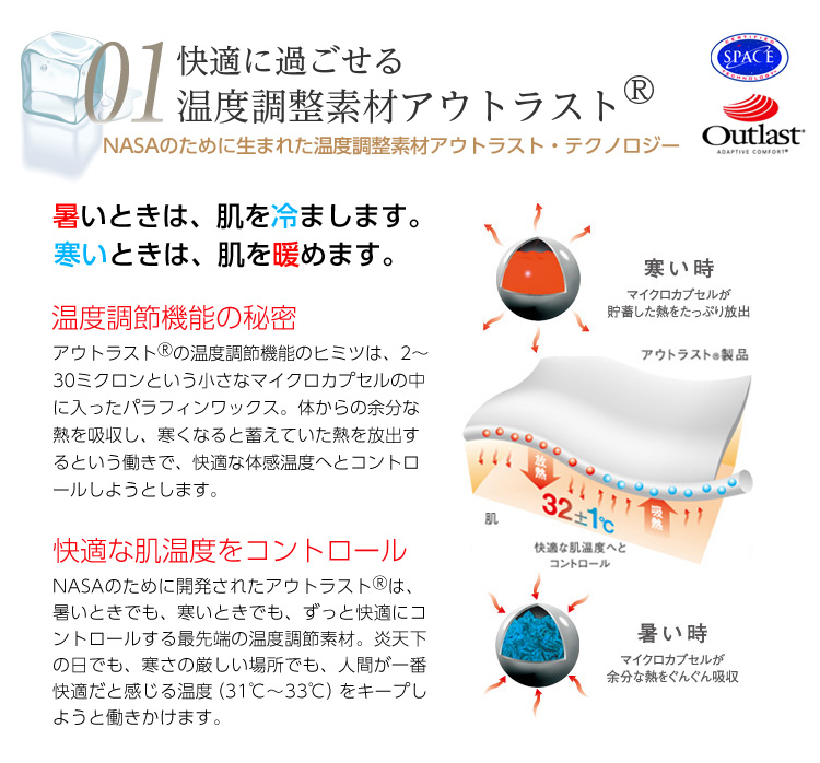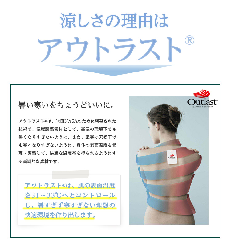 従来品と比べ、約2倍の冷感素材「アウトラスト」を使用!