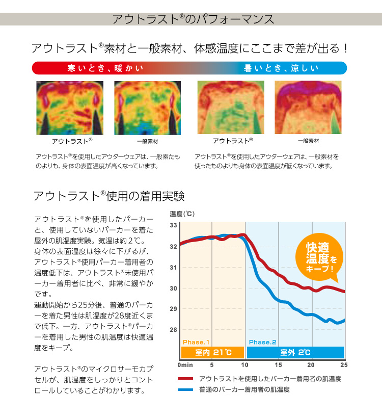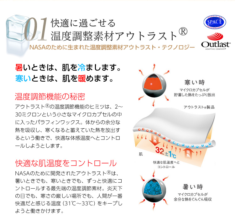 従来品と比べ、約2倍の冷感素材「アウトラスト」を使用!