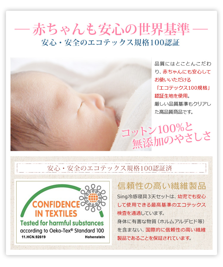 中綿には、最近の増殖を抑制し、防臭効果を発揮する高品質素材を使用しているので、赤ちゃんや子供、お肌に敏感な方にも安心してお使いいただけます。