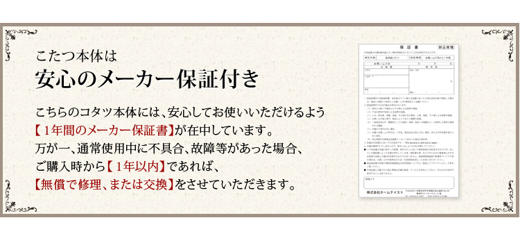 | 仕様詳細 - こたつ本体 | ||||||||||