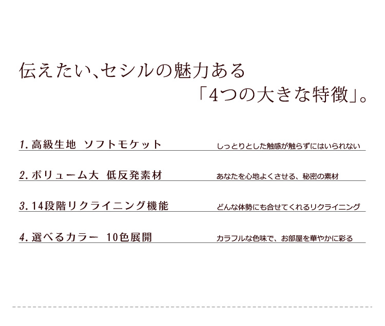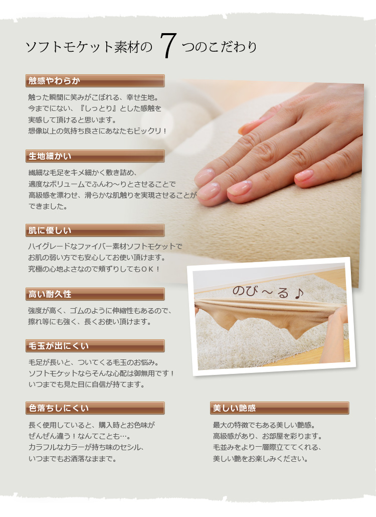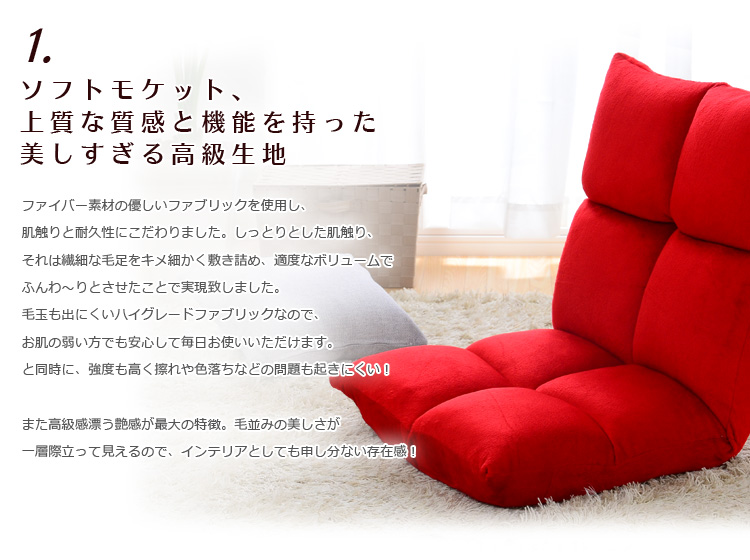 上質な質感と機能を持った高級生地、ソフトモケット採用。触った瞬間気持ちいい、しっとりふんわりしていて毛玉も出にくいハイグレードファブリックに仕上げております。