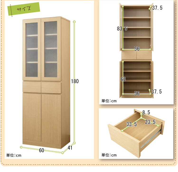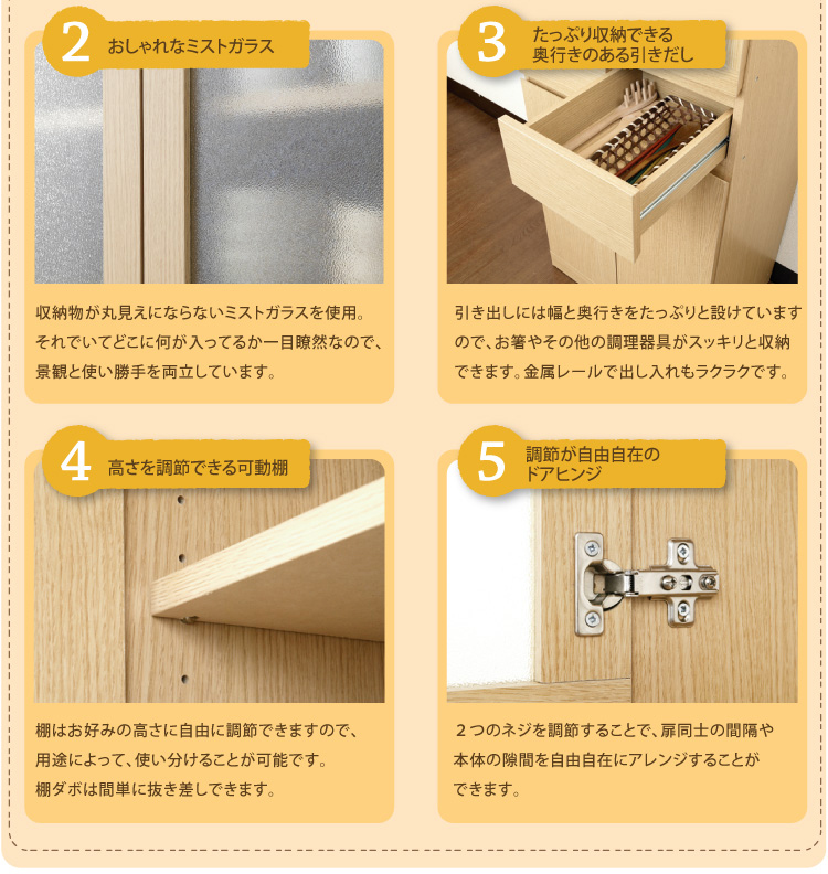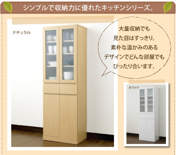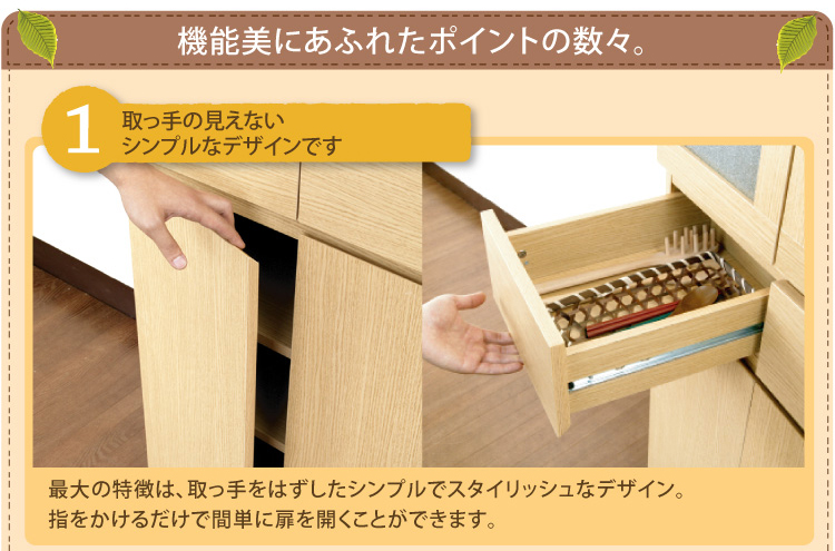 大量収納でもスッキリしたナチュラルラインなデザインで使う場所を選びません。無駄のない収納スペースでたくさんの食器を収納できます!