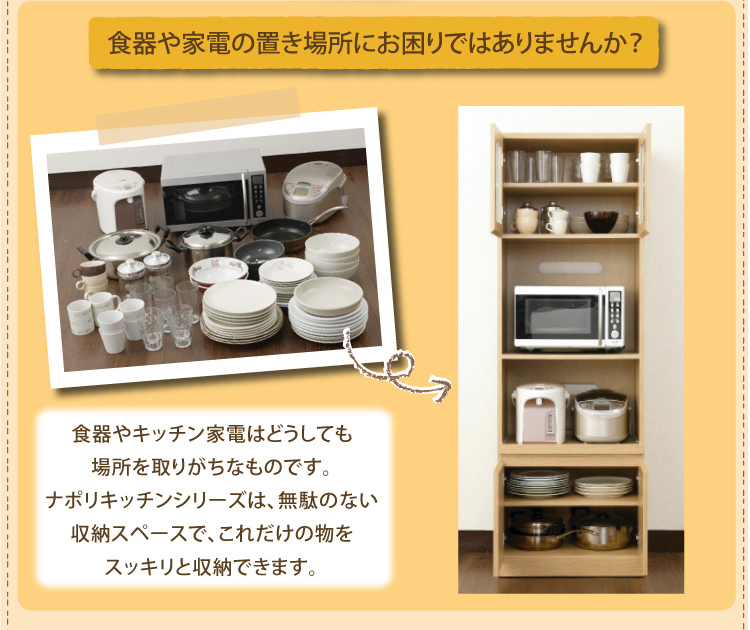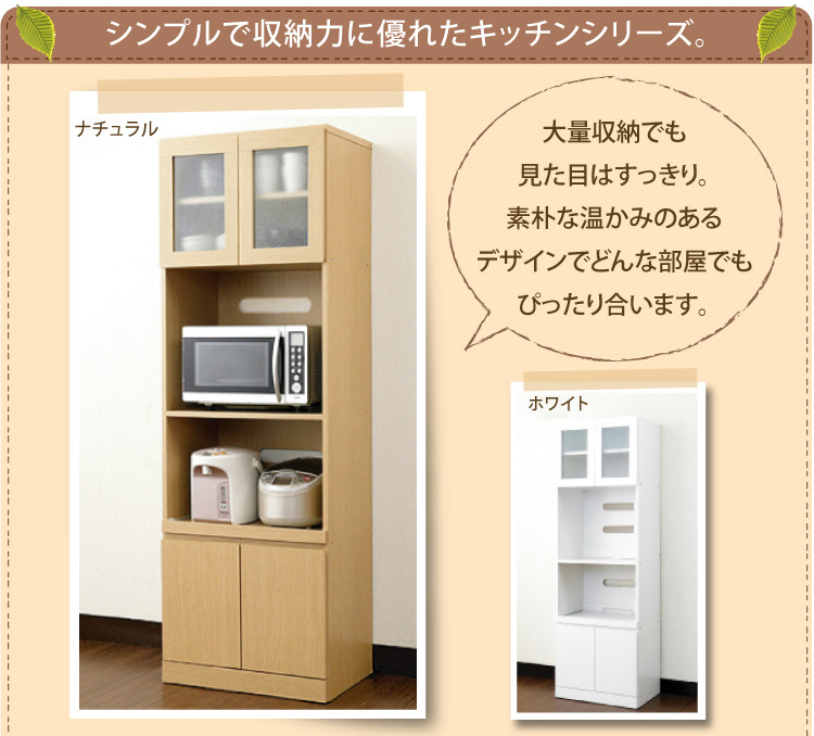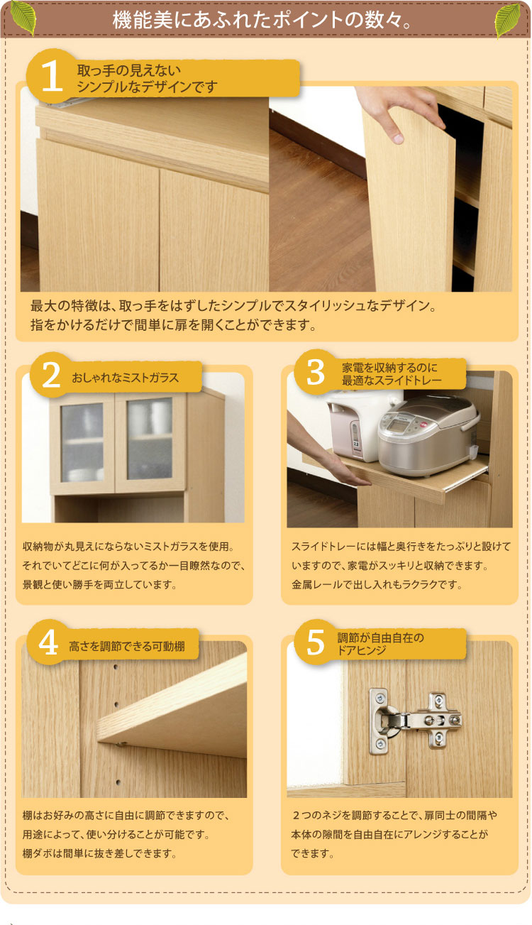 大量収納でもスッキリしたナチュラルラインなデザインで使う場所を選びません。無駄のない収納スペースでたくさんの食器を収納できます!