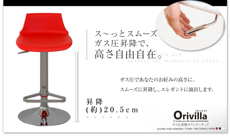 ガス圧昇降でお好みの高さに。昇降約20.5cmの調節が可能です。