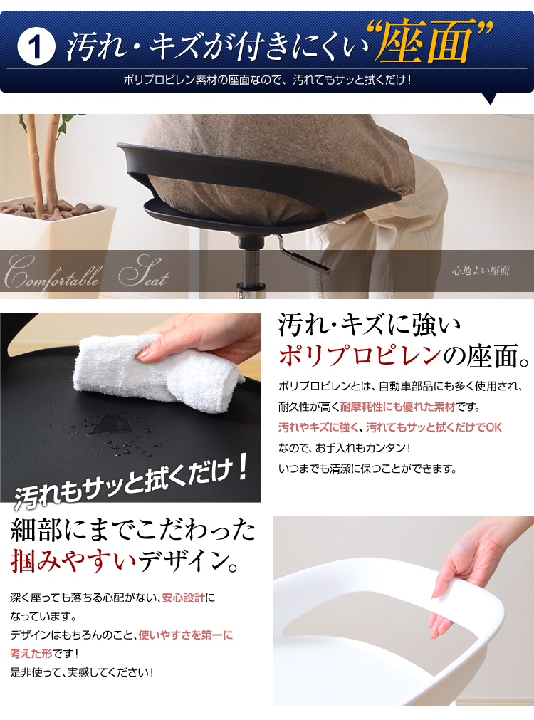 ポリプロピレン素材なので傷や汚れに強く、耐久性にも優れているのでお手入れも簡単!いつまでも清潔に保つことができます。