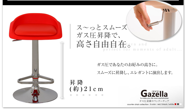 ガス圧昇降でお好みの高さに。昇降約21cmの調節が可能です。