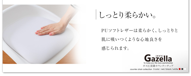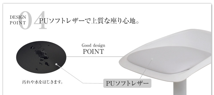 柔らかく、しっとりとした肌触りのPUソフトレザーを使用しているので、肌に吸いつく心地よさを感じられます。汚れにも強いのでお手入れも簡単です。