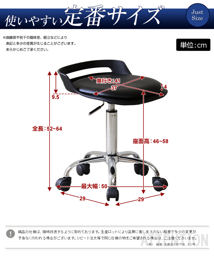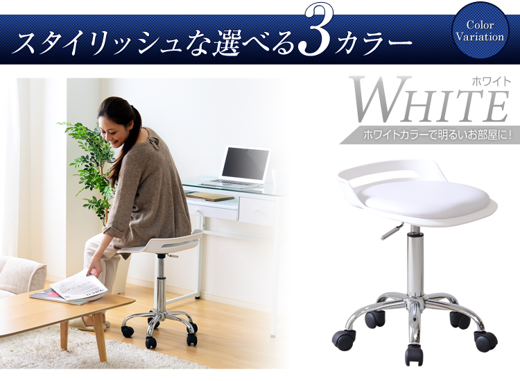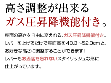 座面高を44~56cmと、お好きな高さに調節できるガス圧機能昇降付きです。また、作業がはかどる360度回転機能もついてます。
