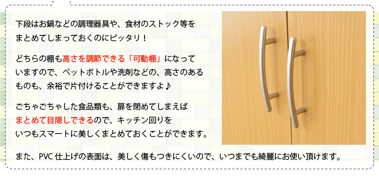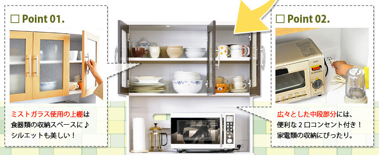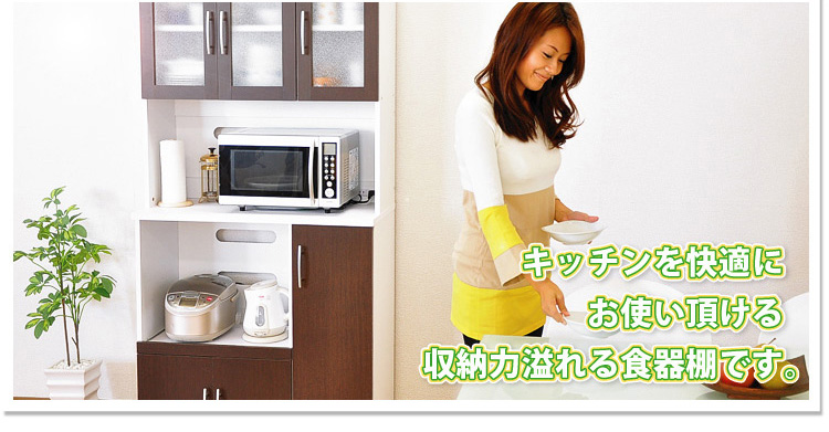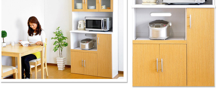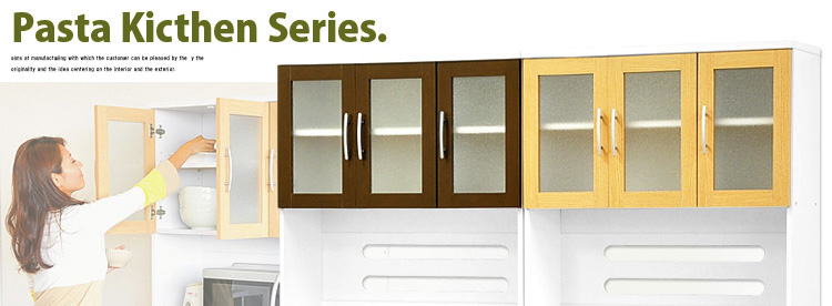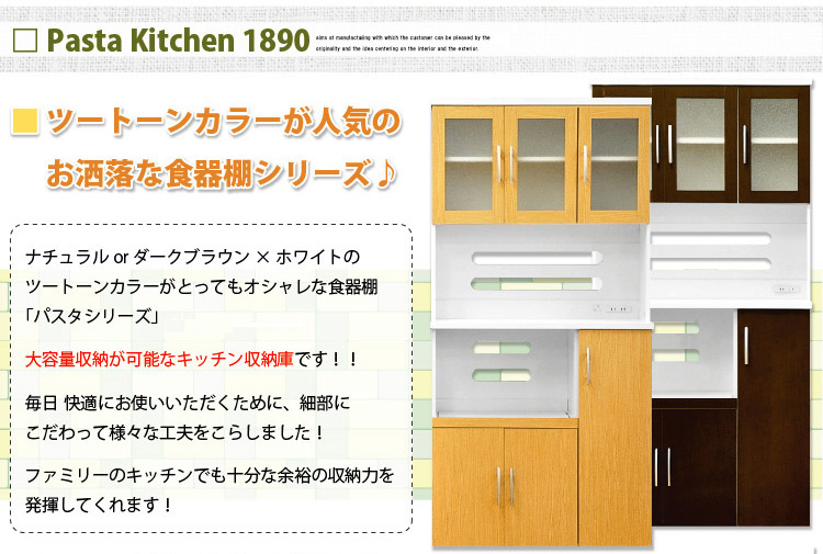 ツートーンカラーが人気の食器棚「パスタシリーズ」。キッチンを快適にお使いいただけるよう、様々な工夫がこなされた収納力溢れる食器棚です。