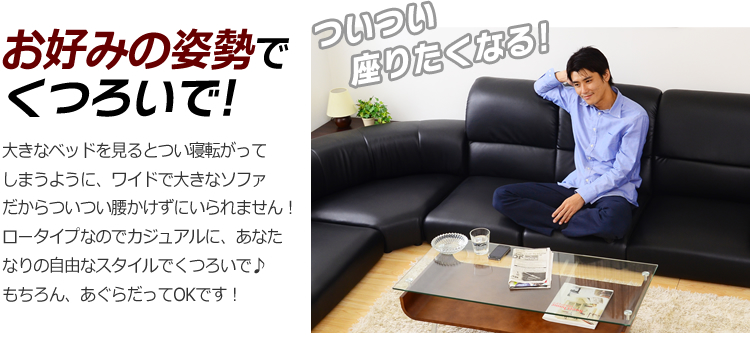 床に近く、ゆったりとしたリラックス感を得られるロータイプソファ。目線が低くなることで天井も高く見え、開放感もたっぷりです!