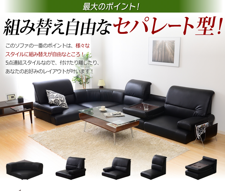 5点連結スタイルなので、お部屋に合わせてお好みのレイアウトが可能です。