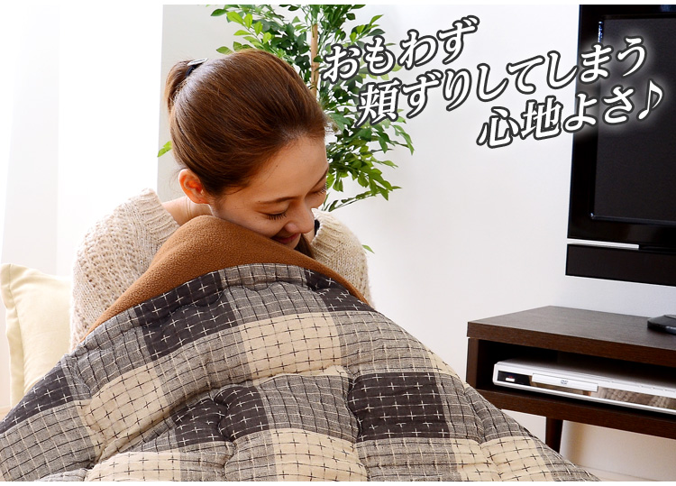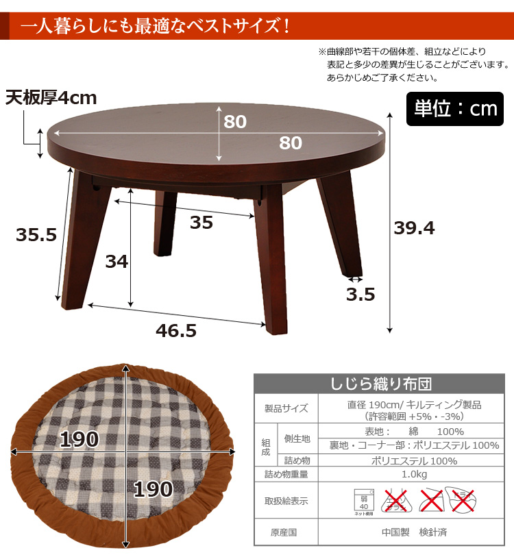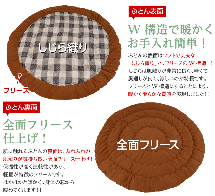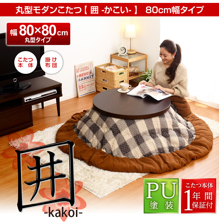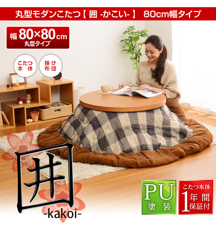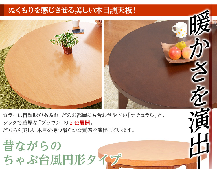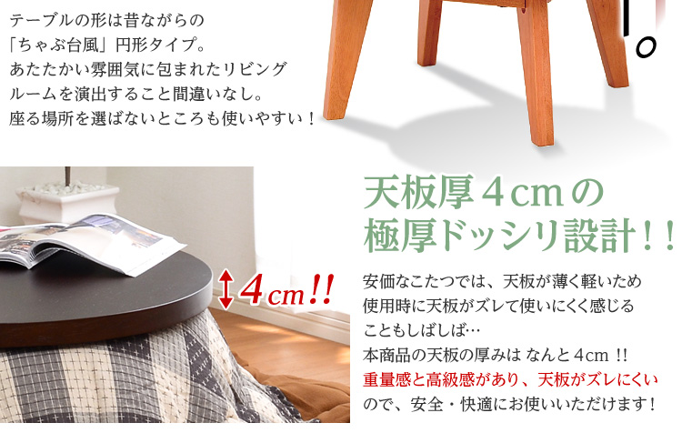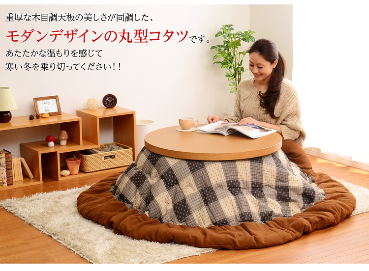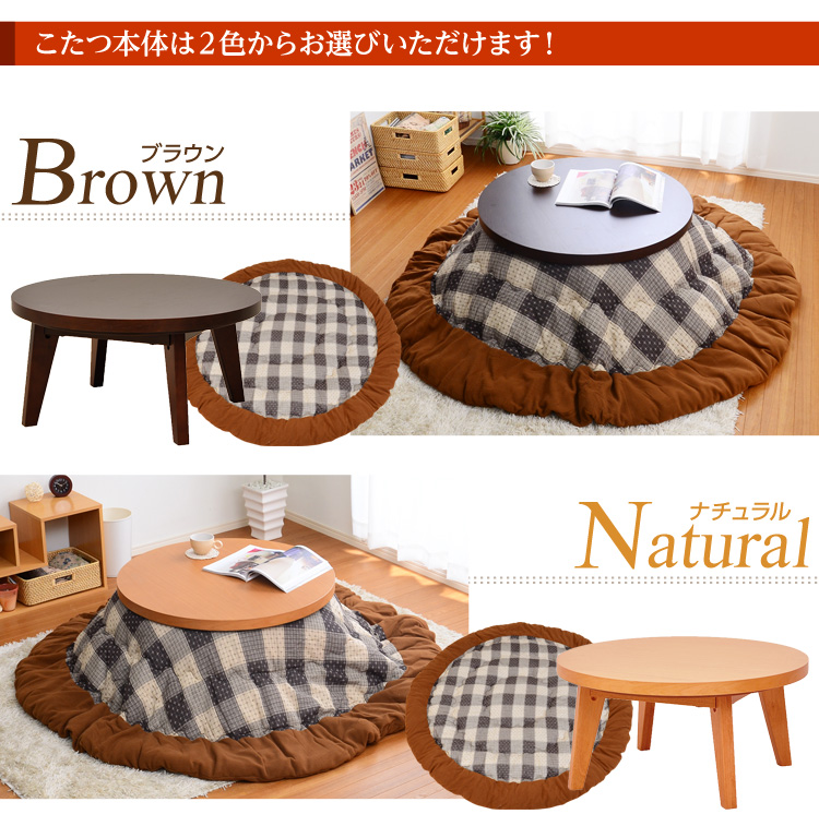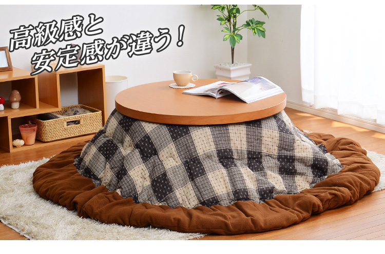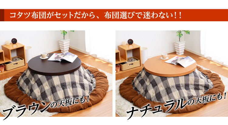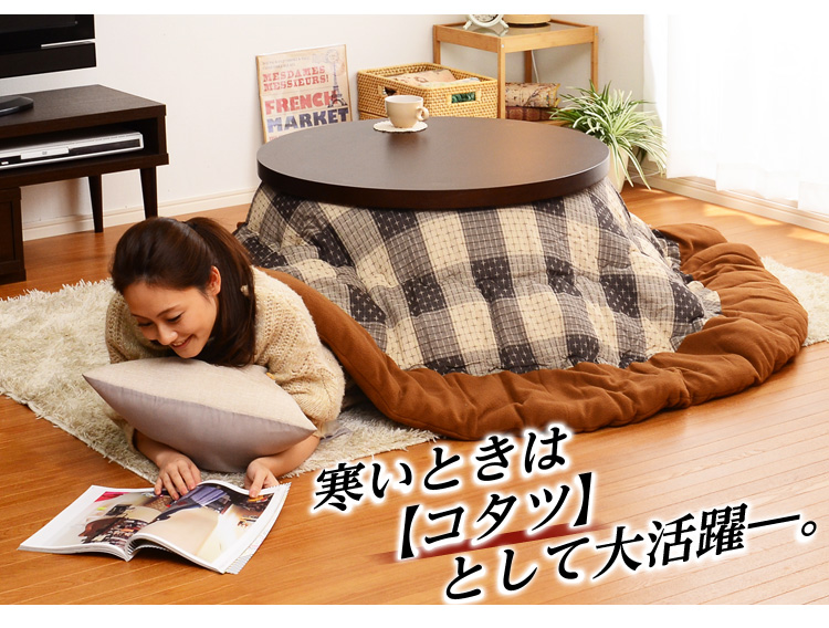 こたつ本体と、掛け布団の2点をセットで!昔ながらのちゃぶ台をイメージさせる円形タイプ。座る場所を選ばず、使いやすいです!