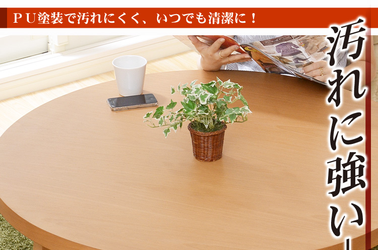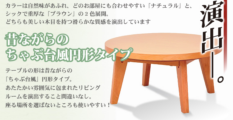 昔ながらのちゃぶ台をイメージさせる円形タイプ。座る場所を選ばず、使いやすいです!