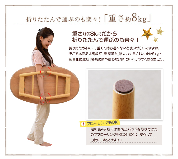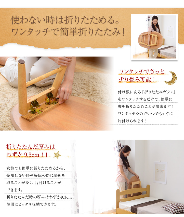 ワンタッチで簡単に脚を折りたたむことができます。重さもないので掃除のときや使わない時など、持ち運びも楽々です!