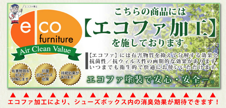 有害物質の抗菌、防臭、分解してくれるエコファ加工を施しているので、いつでも衛生的に安心してお使いいただけます。