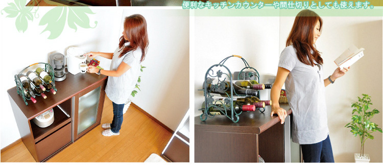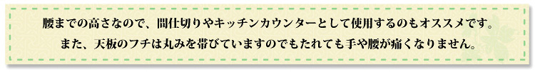 腰あたりの高さなので、間仕切りやキッチンカウンターとしてお使いいただけることができます。
