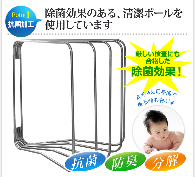 有害物質の抗菌、防臭、分解してくれるエコファ加工を施しているので、いつでも衛生的に安心してお使いいただけます。