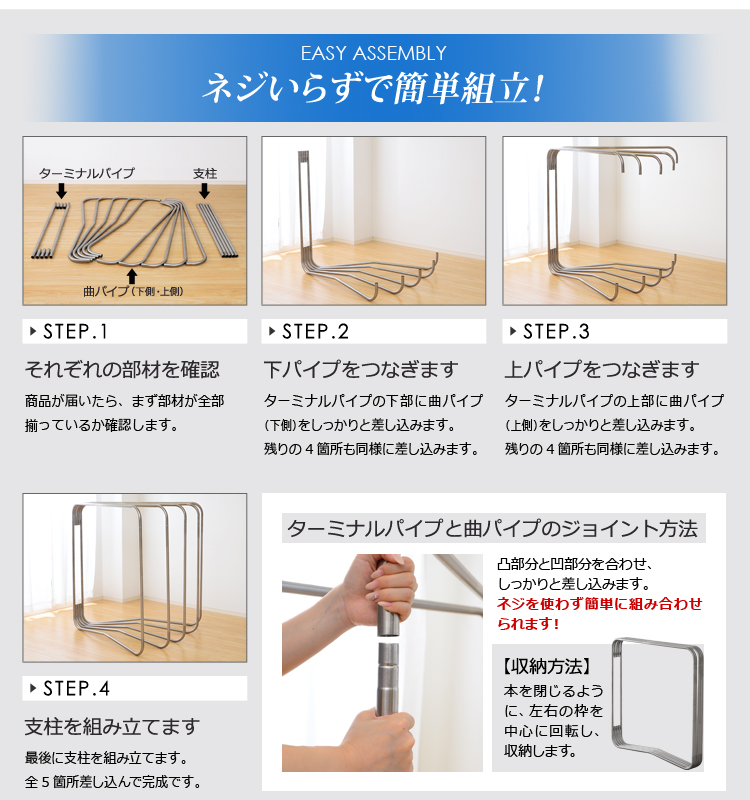 ネジを使わず、差し込んでつなげるので簡単に組み立てることができます。