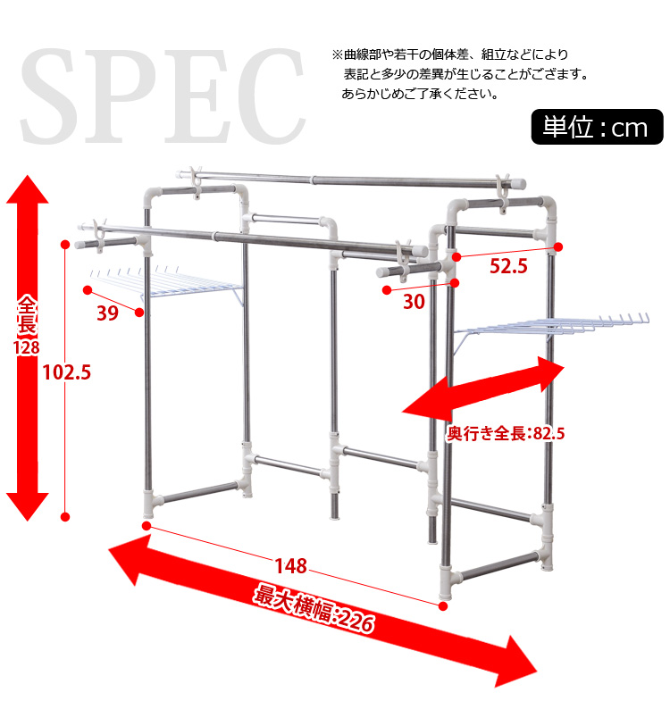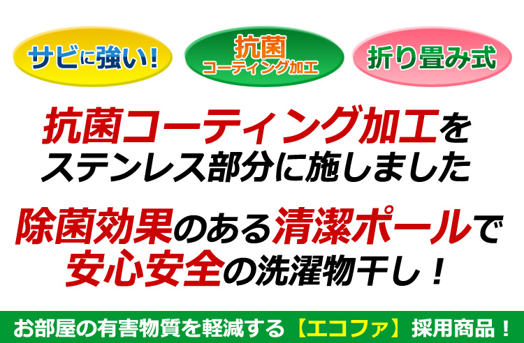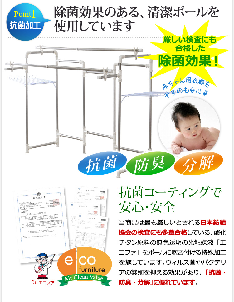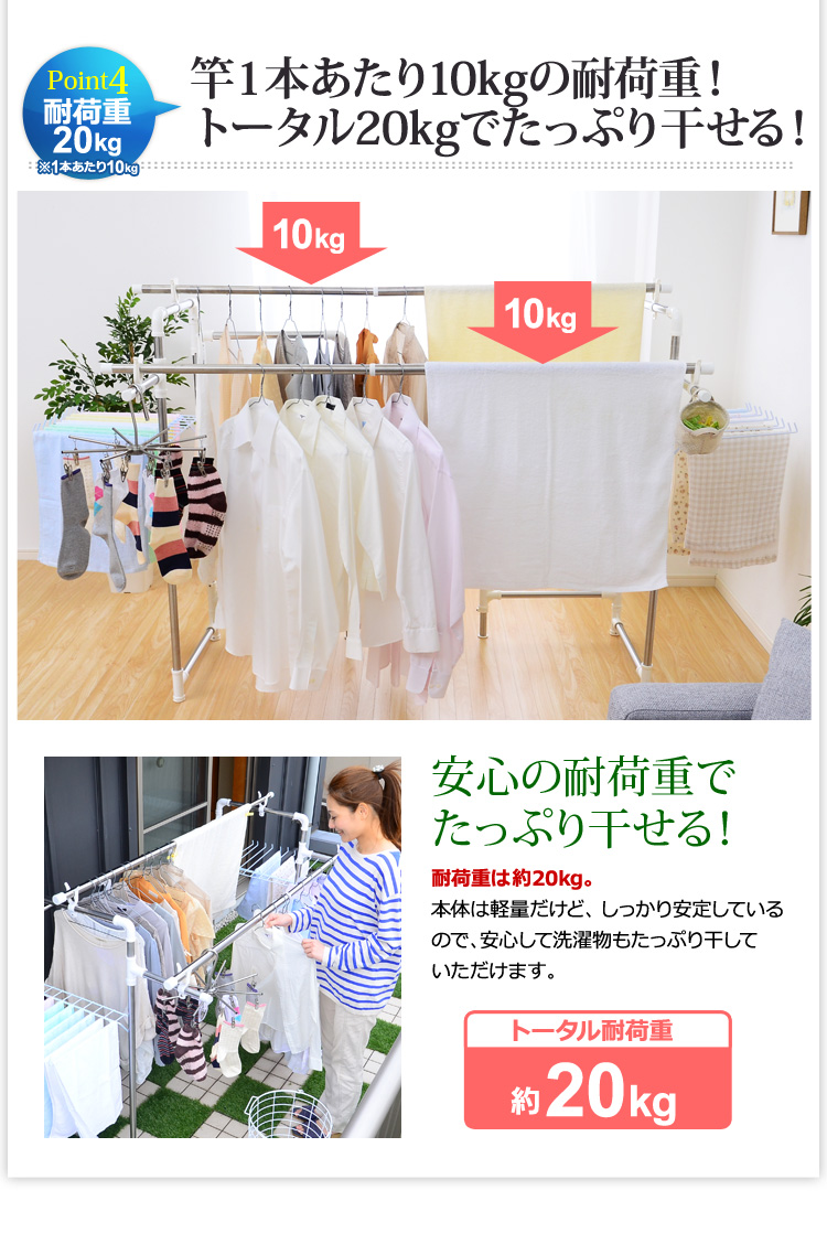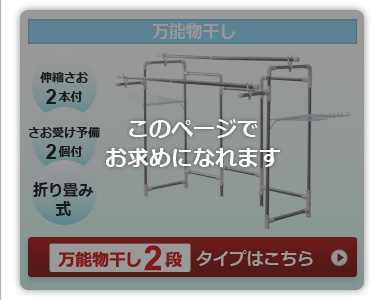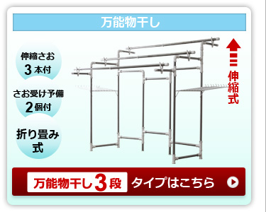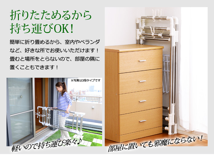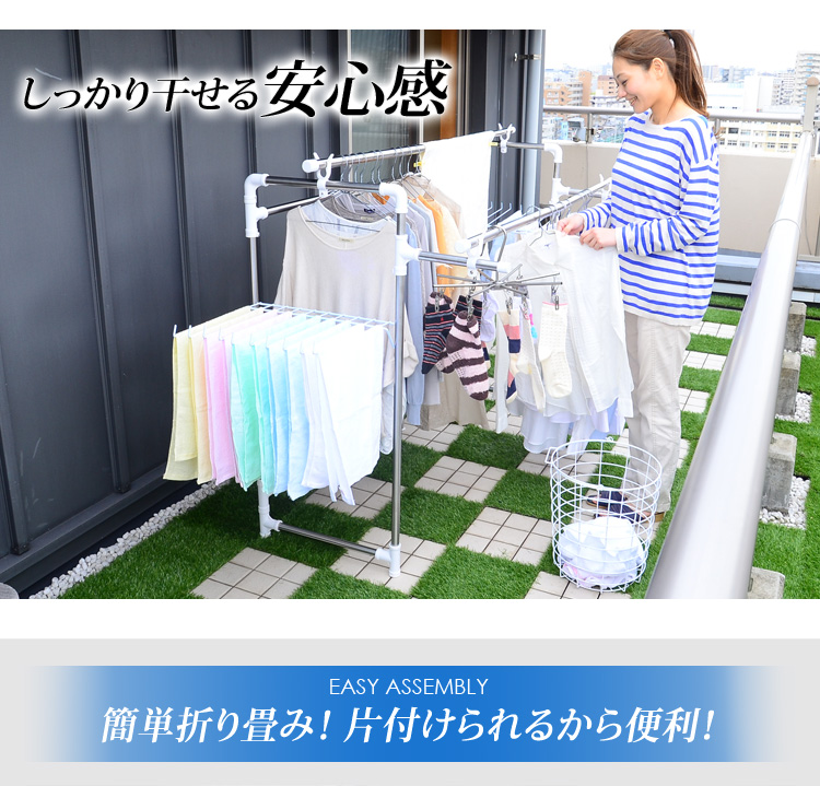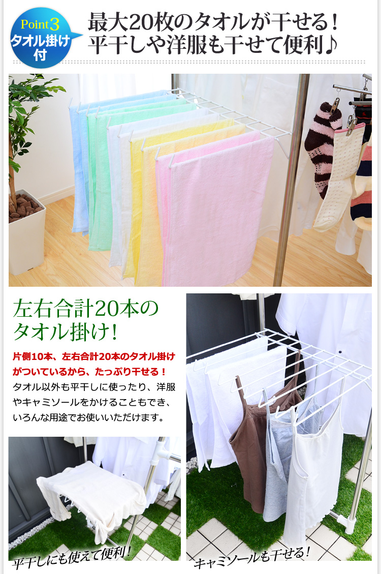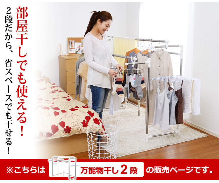 伸縮竿2本付きの物干し!省スペースでもたっぷり干す事ができます。錆びにくいステンレス製なので長くご愛用していただけます。