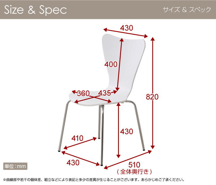 左右に大きく広がった背もたれが身体を優しく包み込み、座ったときに安心感を与えてくれます。また、成型合板が生み出す適度なしなりが心地よく身体を支えてくれます。