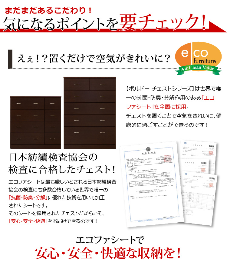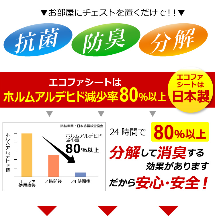 有害物質の抗菌、防臭、分解してくれるエコファ加工を施しているので、いつでも衛生的に安心してお使いいただけます。