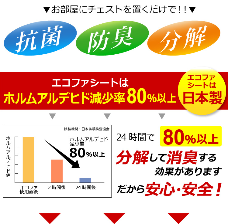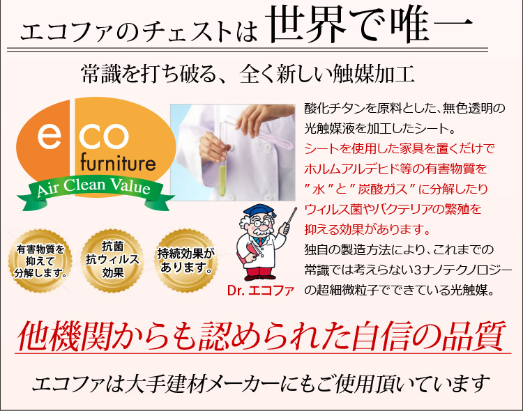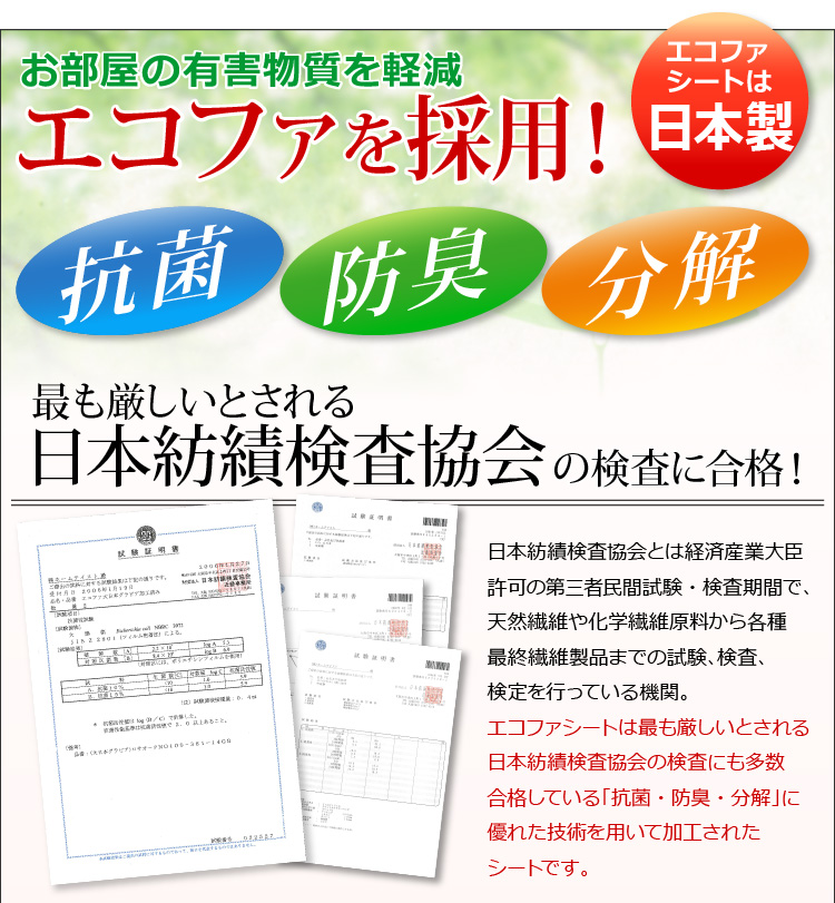 有害物質の抗菌、防臭、分解してくれるエコファ加工を施しているので、いつでも衛生的に安心してお使いいただけます。
