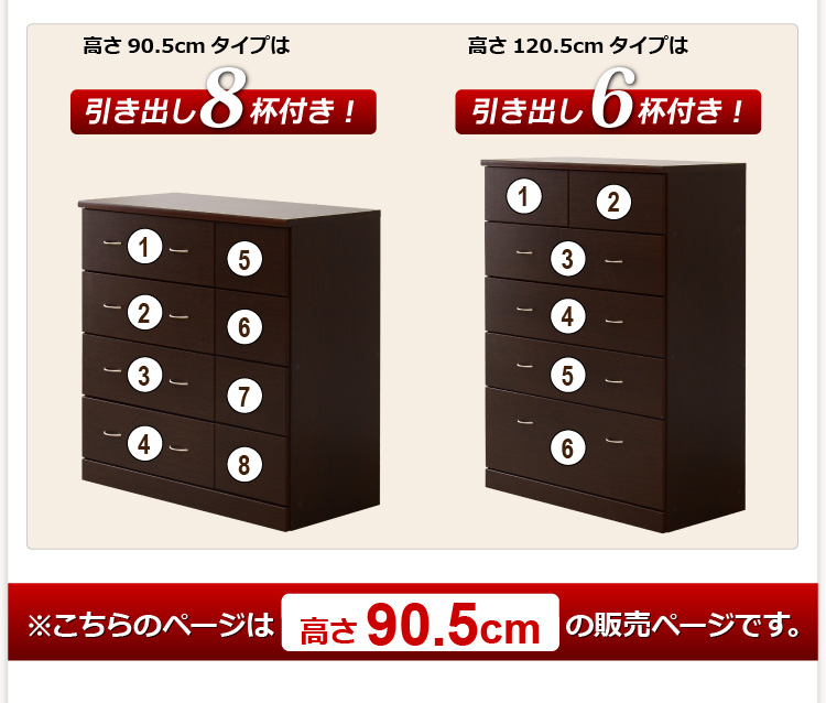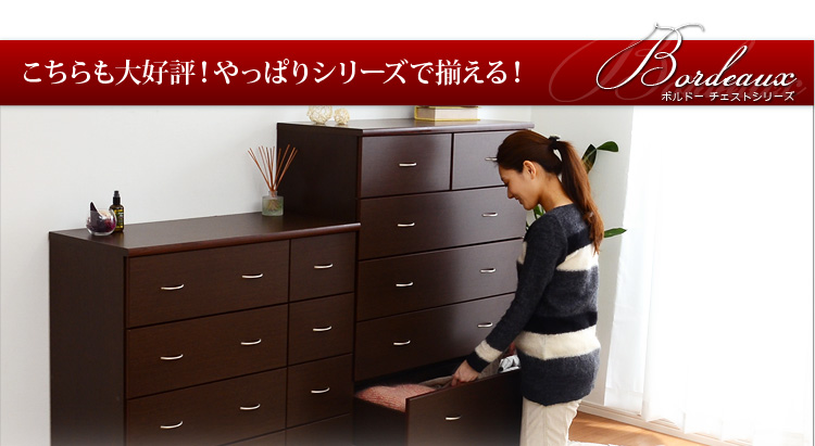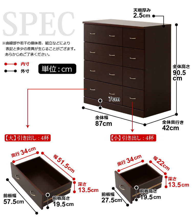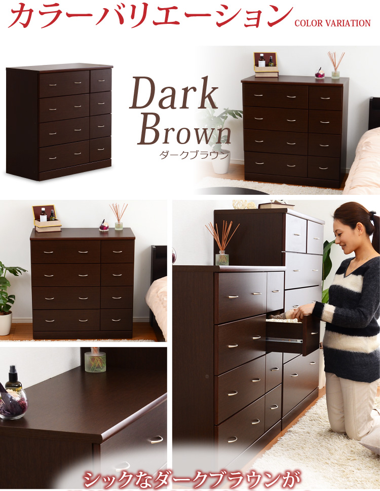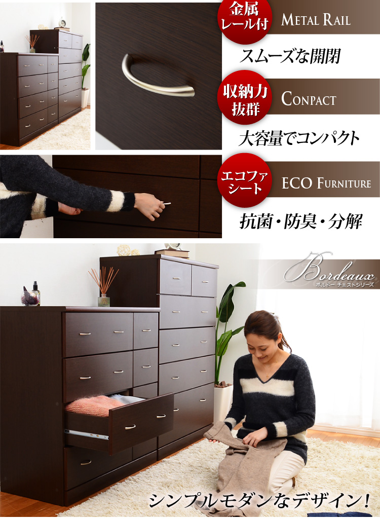 ワンルームにも最適なコンパクトサイズでも、大と小、計8杯の引き出しで小物からアウターまでしっかり整理して収納できます。