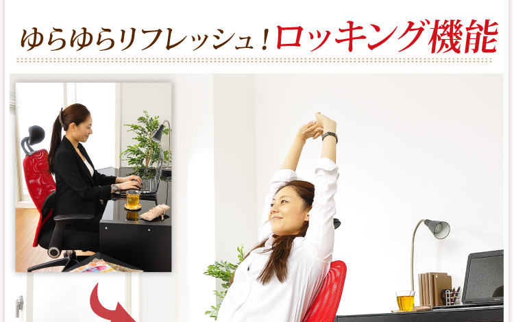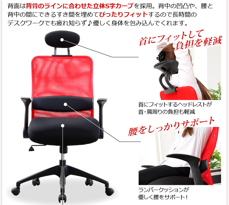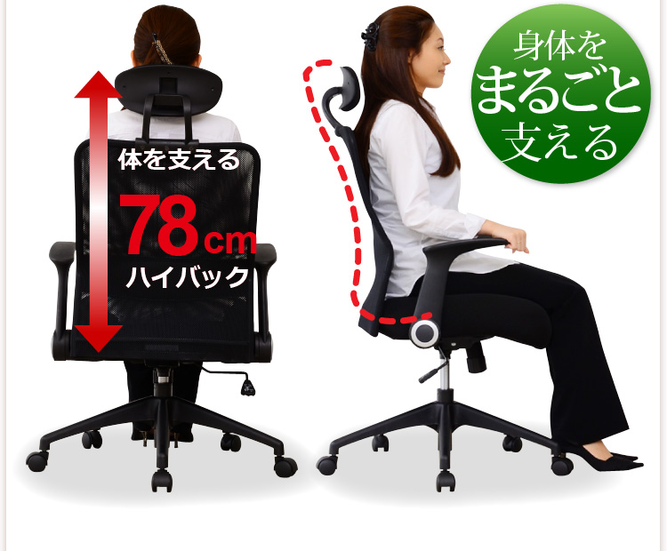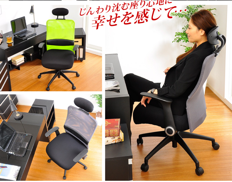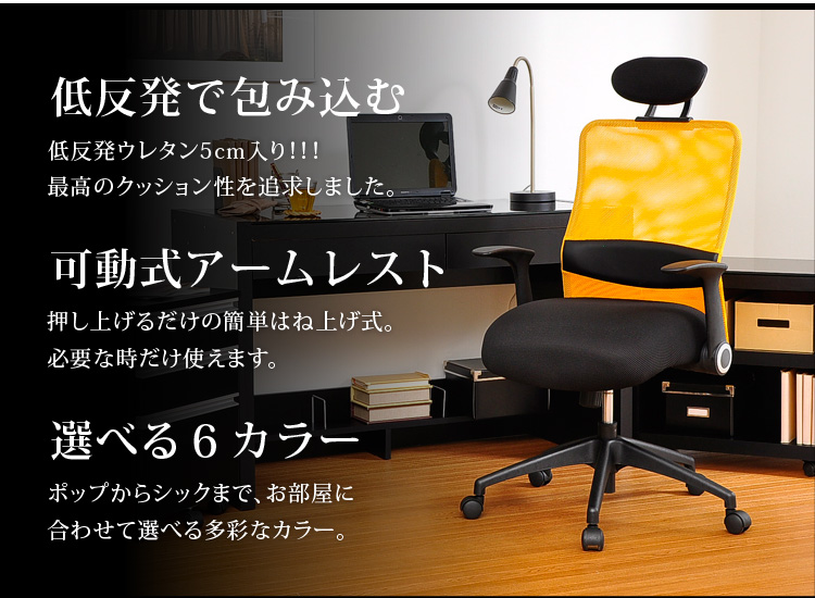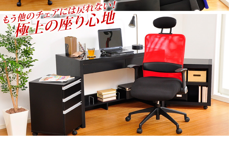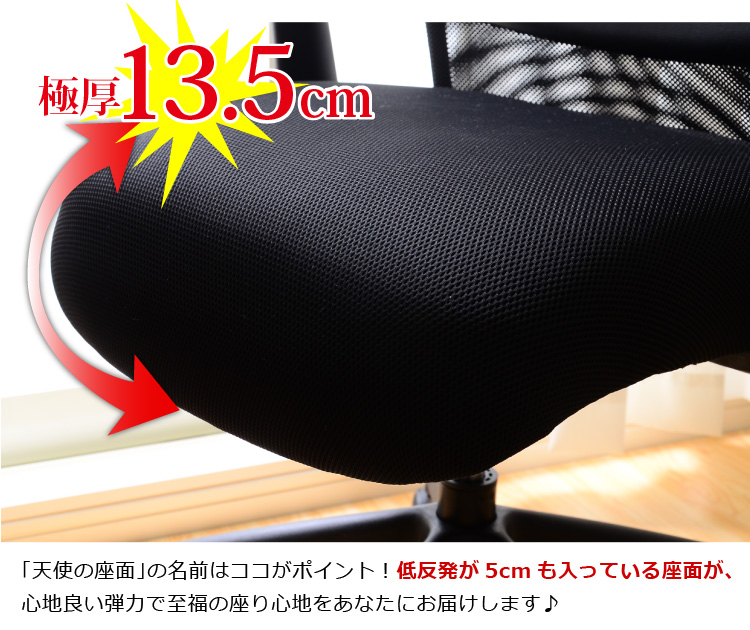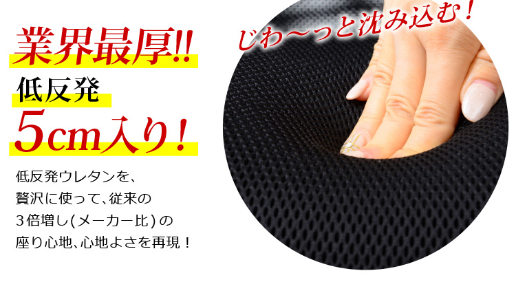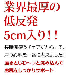 低反発ウレタン5cm入りで極上の座り心地!身体をしっかり支えてくれるハイバック背面と、動くヘッドレストで長時間座っても疲れ知らずです!