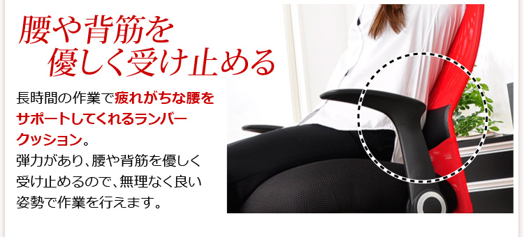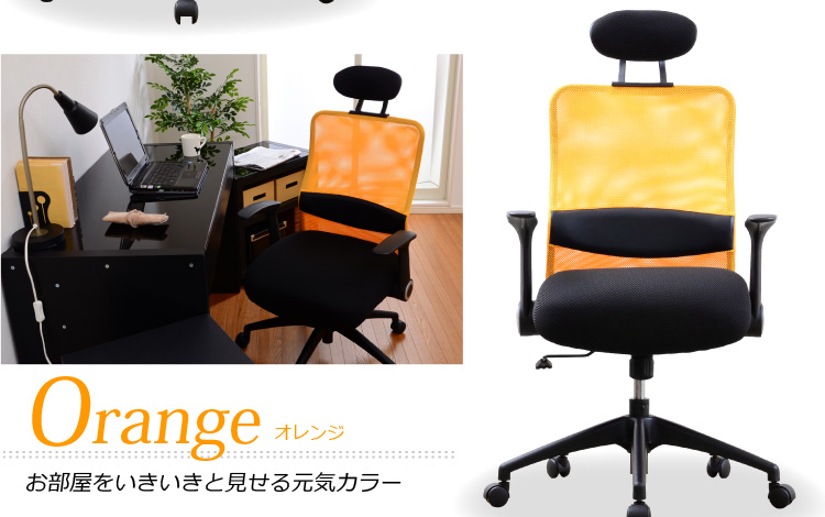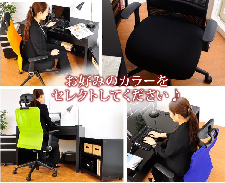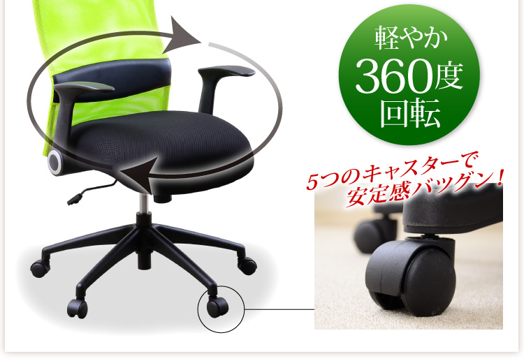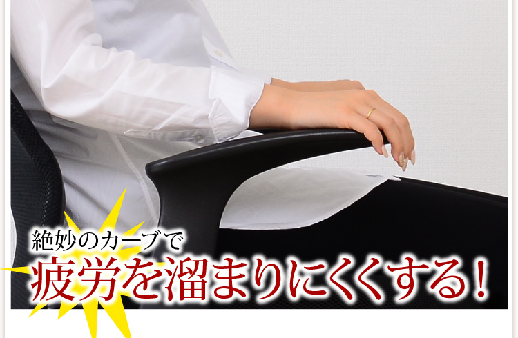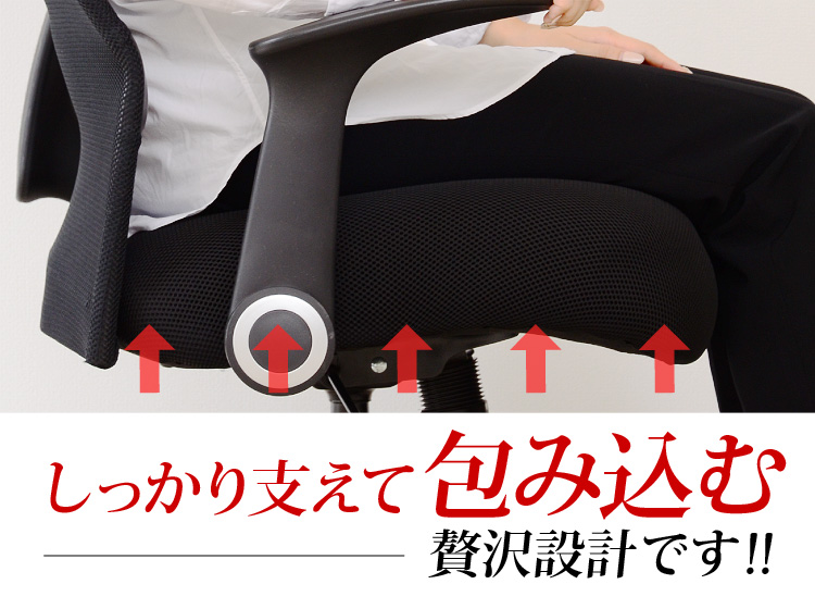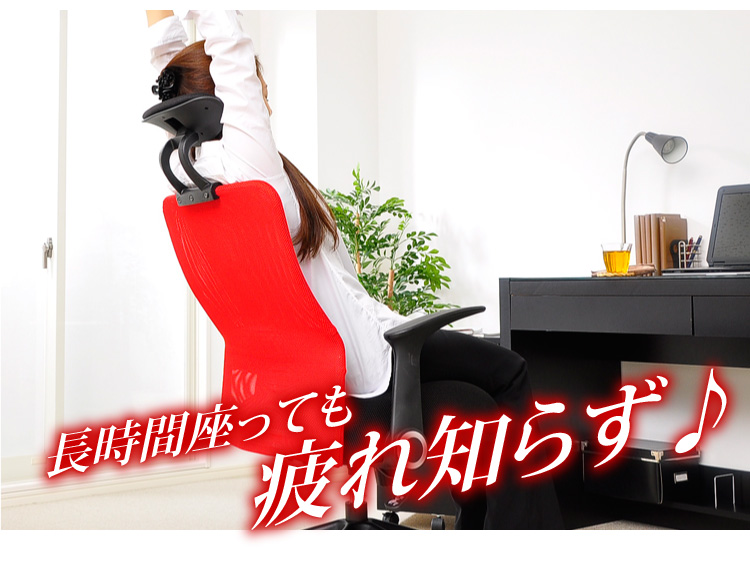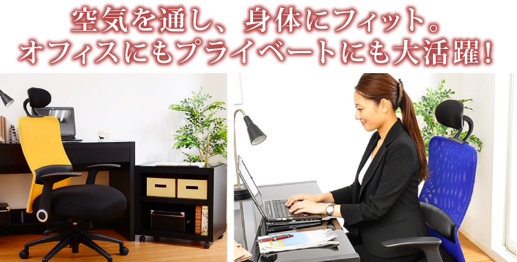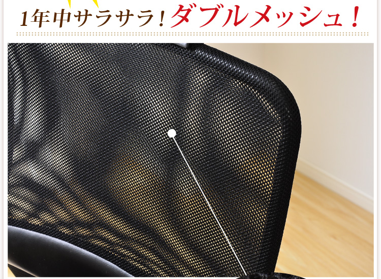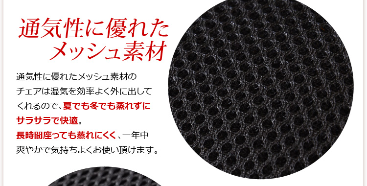 通気性に優れたメッシュ素材のチェアなので、長時間座っても蒸れにくく、一年中爽やかで気持ちよくお使いいただけます。