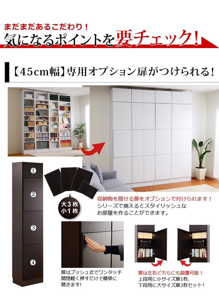 別売りの専用のオプション扉を付けると収納物を隠せるので、スタイリッシュなお部屋を作ることができます!
