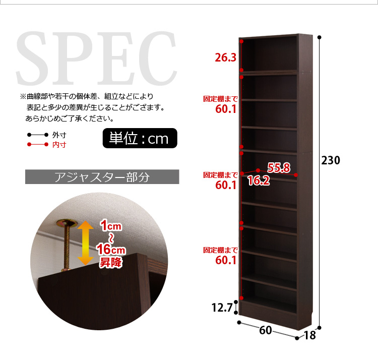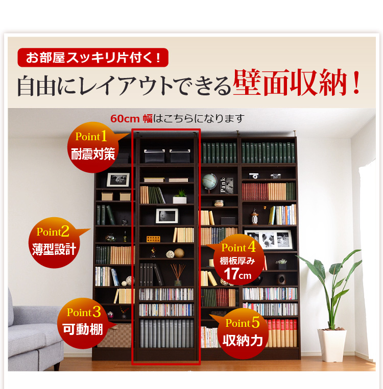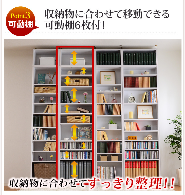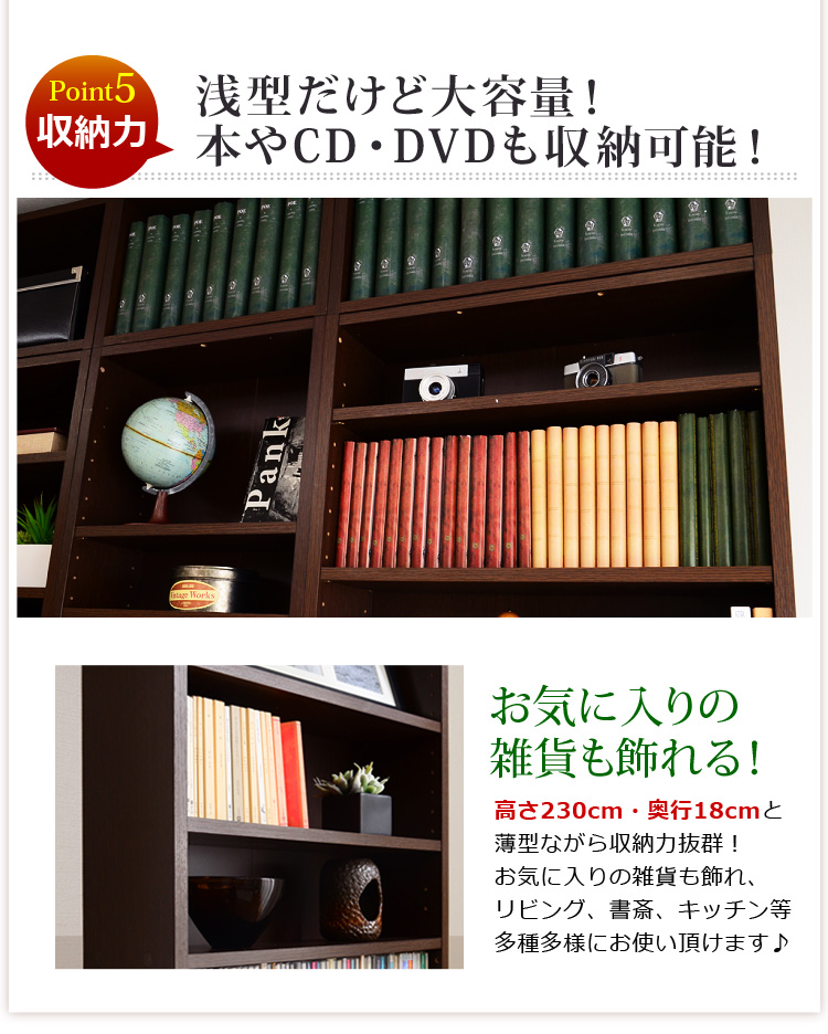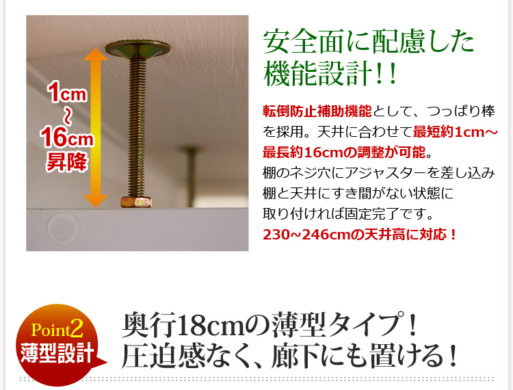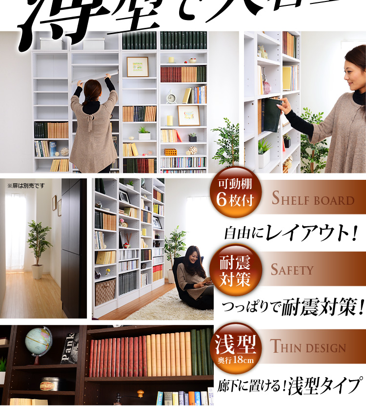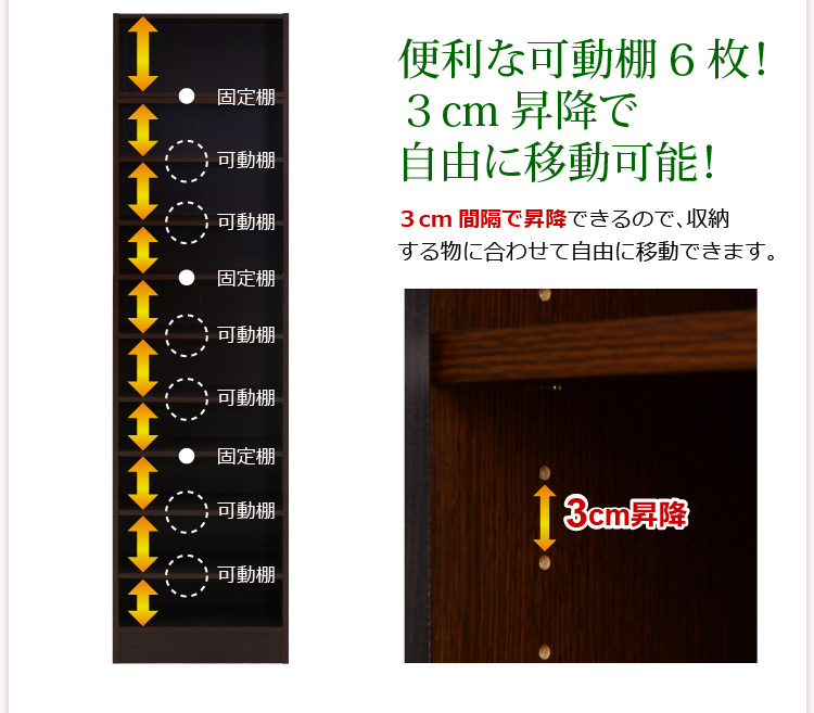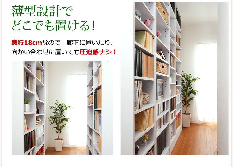 薄型ながら収納力は抜群!可動棚も付いているので、収納するものを選ばず、多種多様にお使いいただけます。