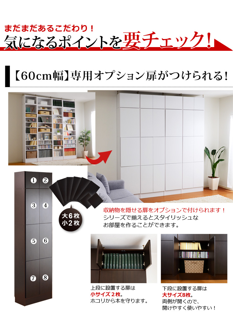 別売りの専用のオプション扉を付けると収納物を隠せるので、スタイリッシュなお部屋を作ることができます!