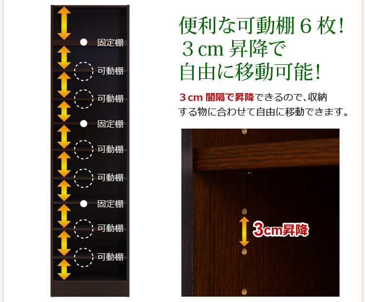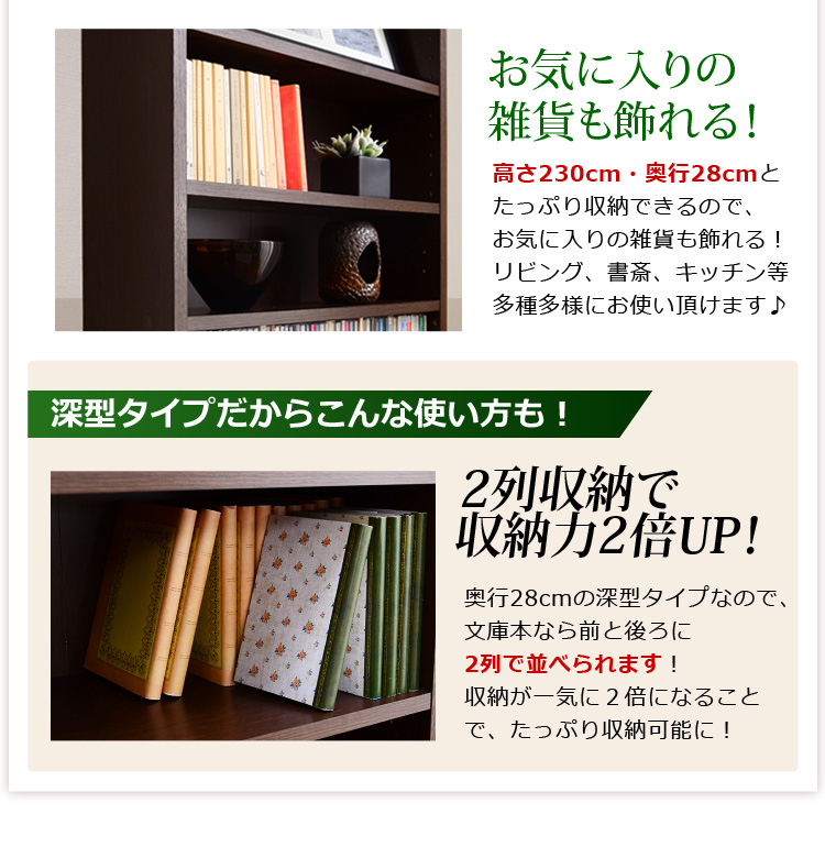 深型だから収納力は抜群!可動棚も付いているので、収納するものを選ばず、多種多様にお使いいただけます。