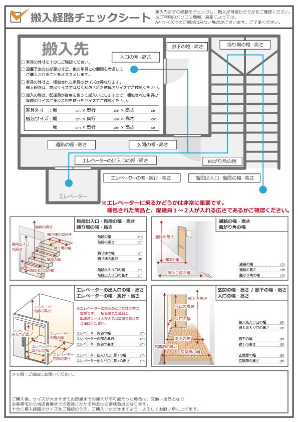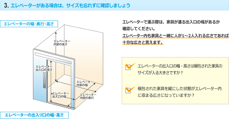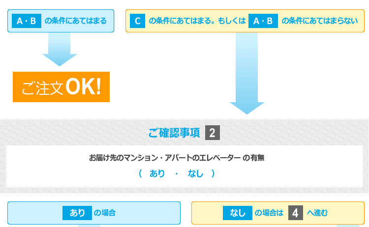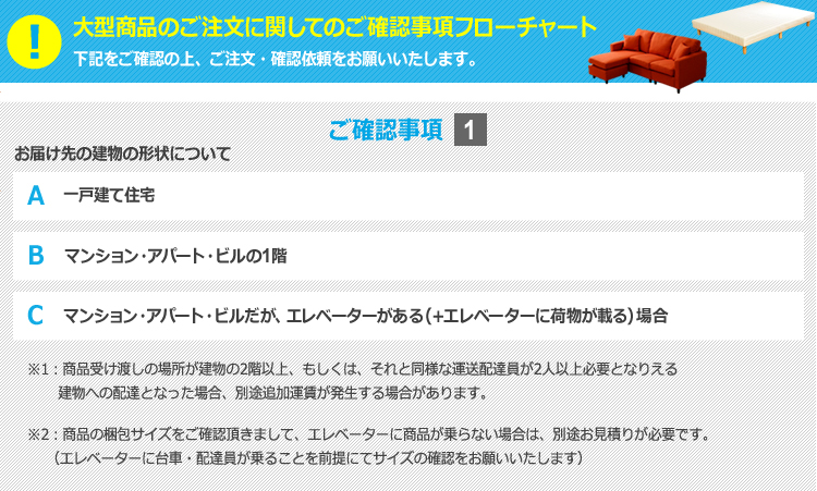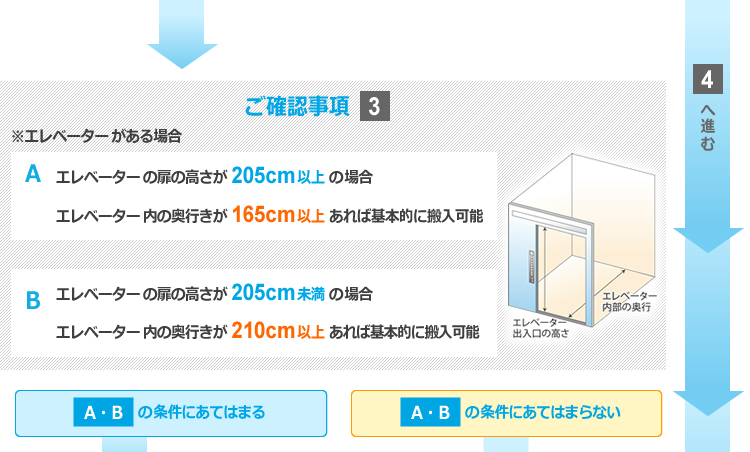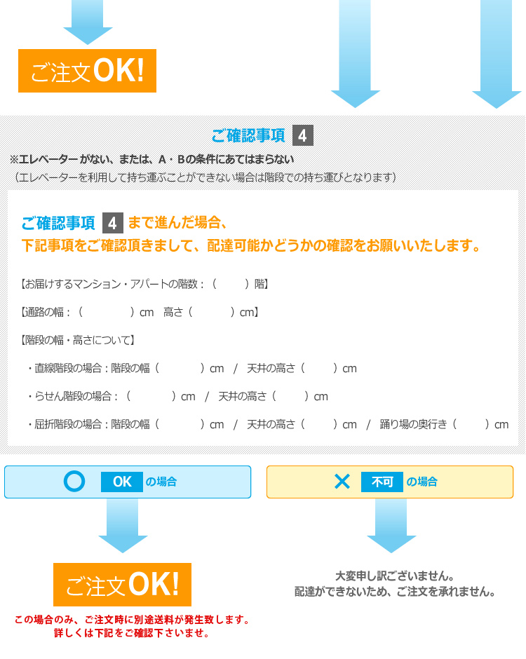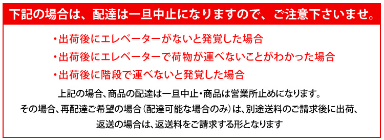 ※出荷後にエレベーターがないと発覚した場合、もしくはエレベータで荷物が運べないことがわかった場合、